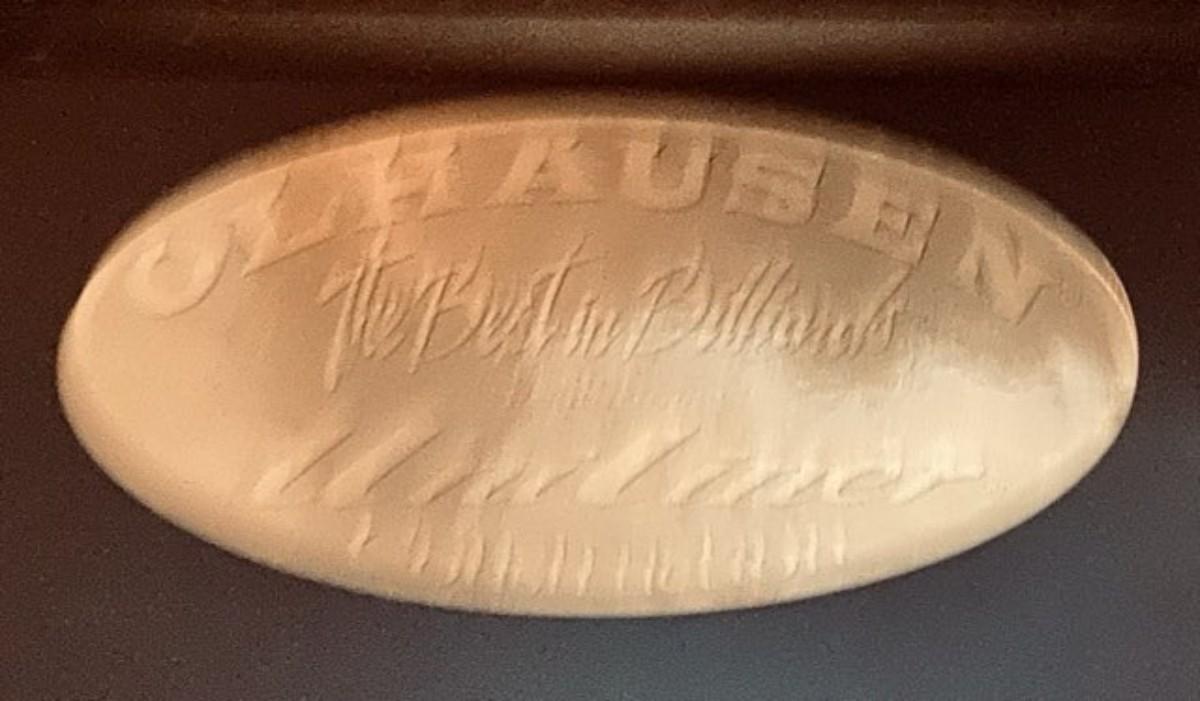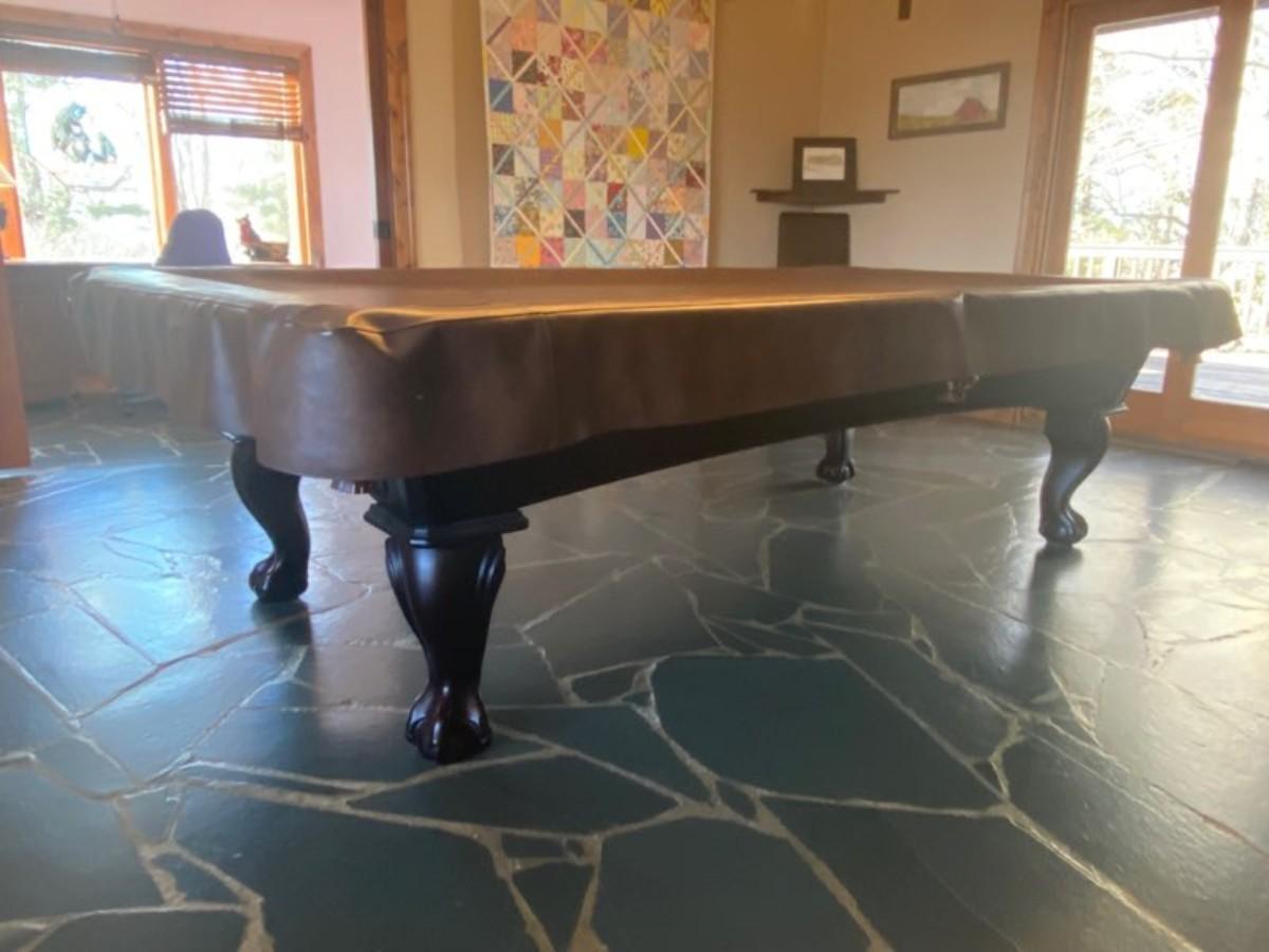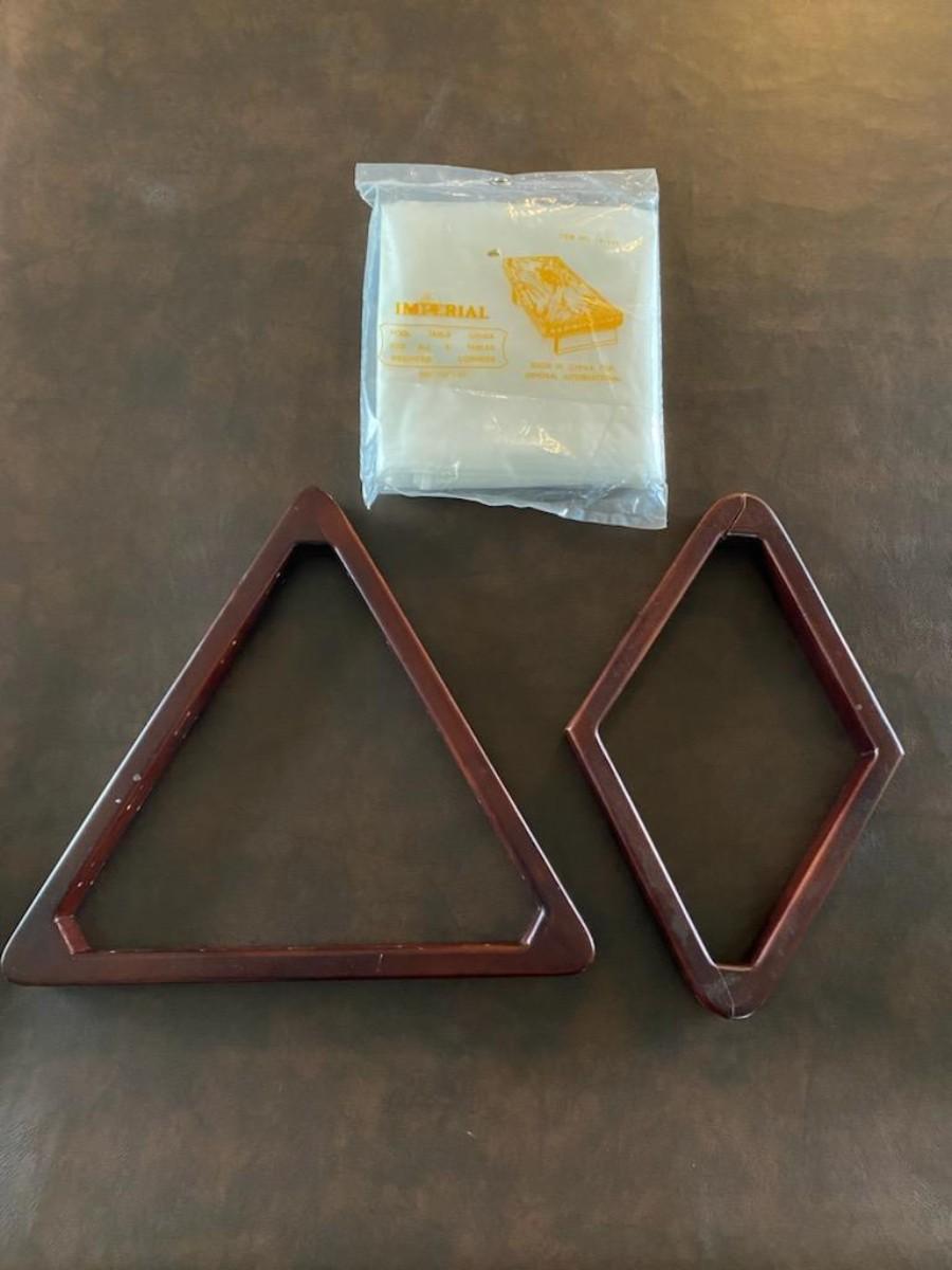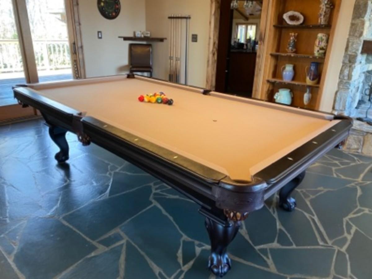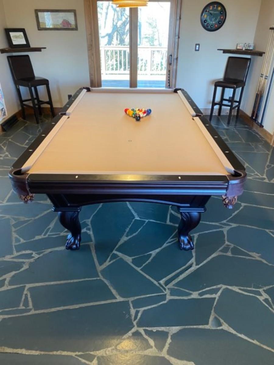 Olhausen Slate Top Billiard Table with Accessories. Balls, ball racks, and cover are included. Approximate Overall Dimensions: 111" x 61 1/2". Approximate Dimensions of Play Area: 102" x 51 1/2".