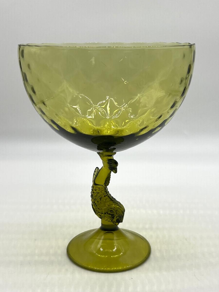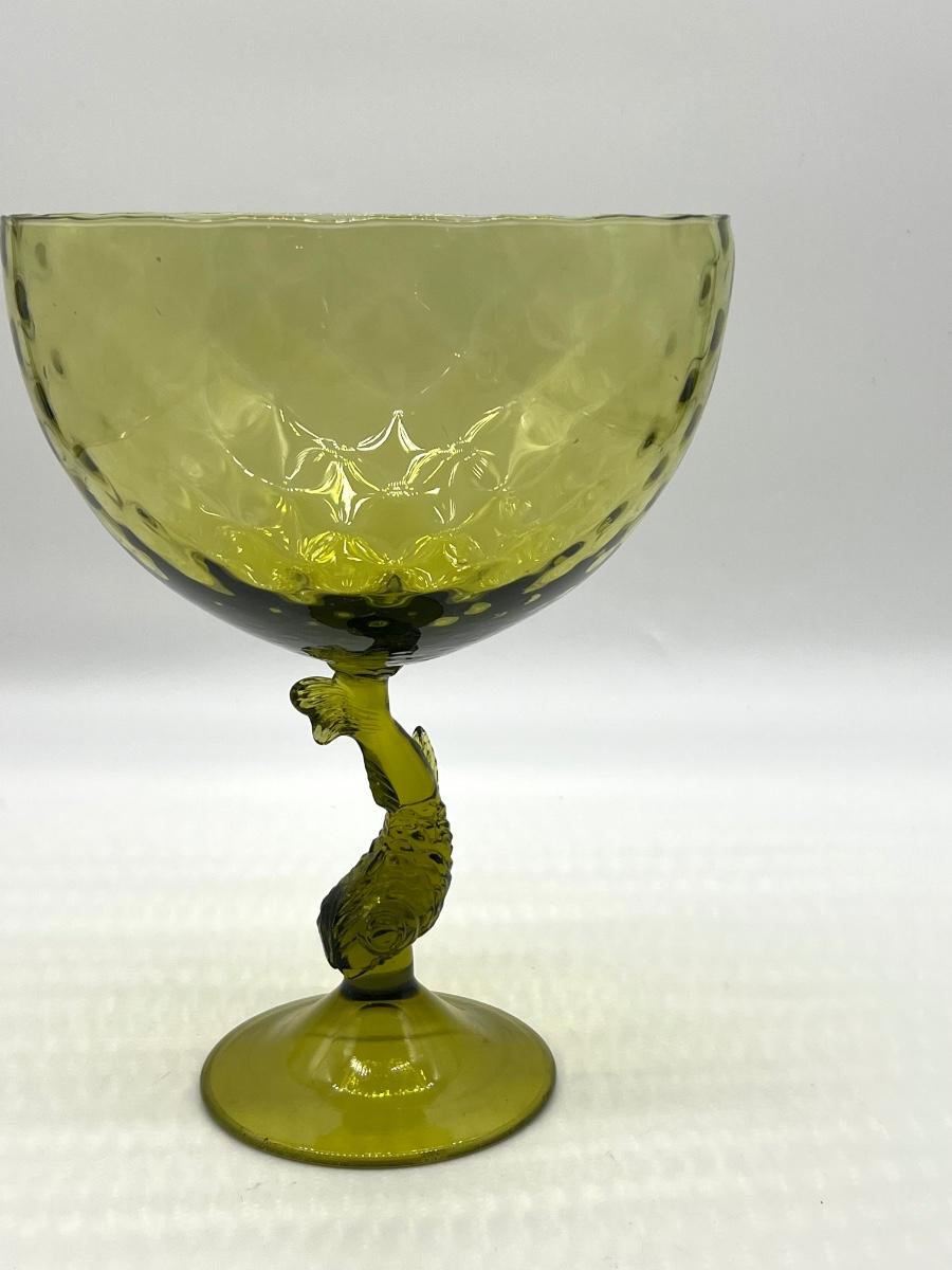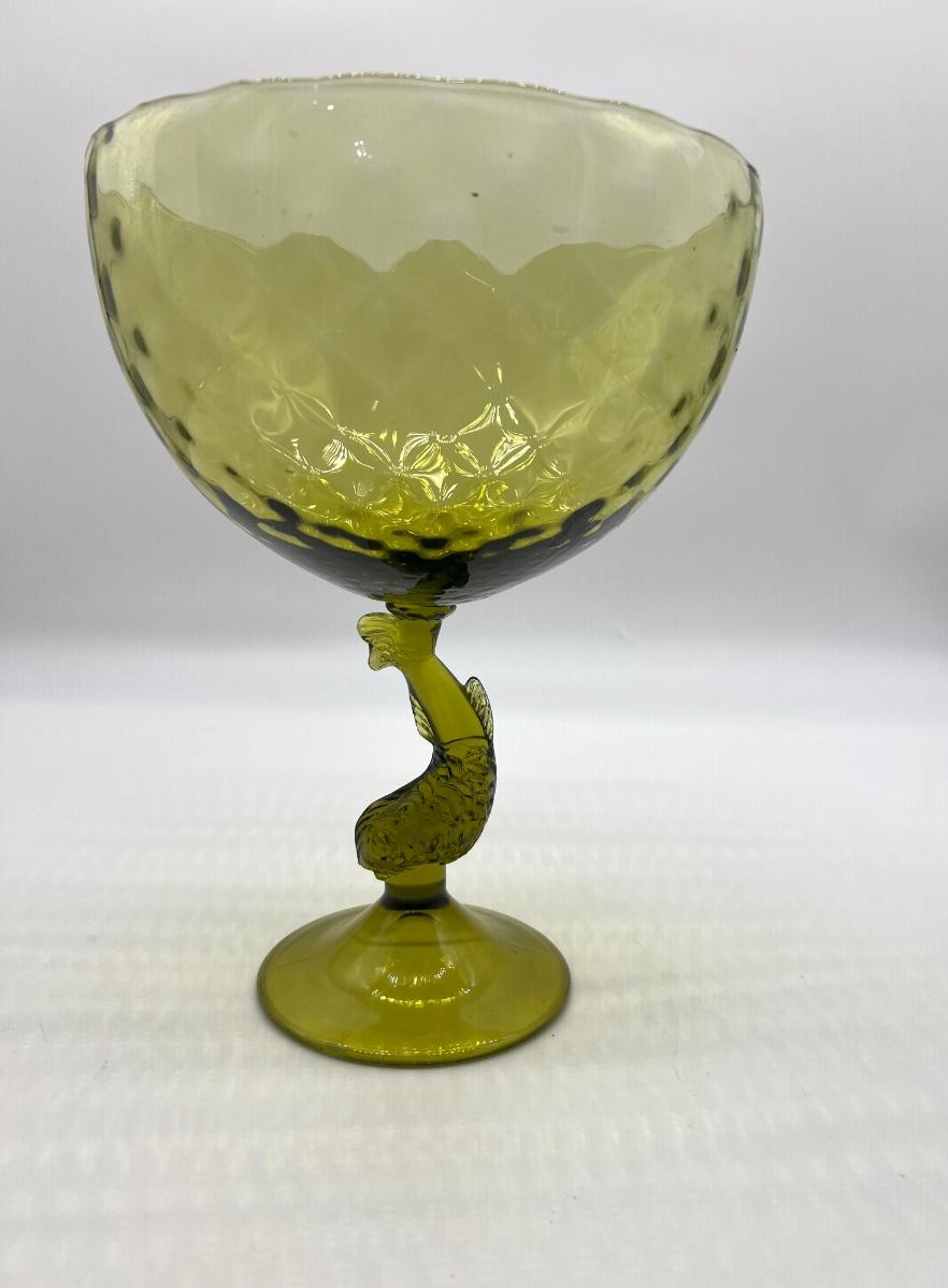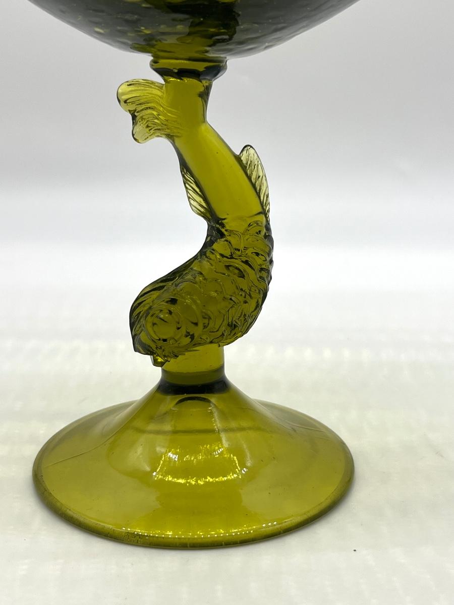 Olive Glass Fish Stemmed Large Compote/Bowl