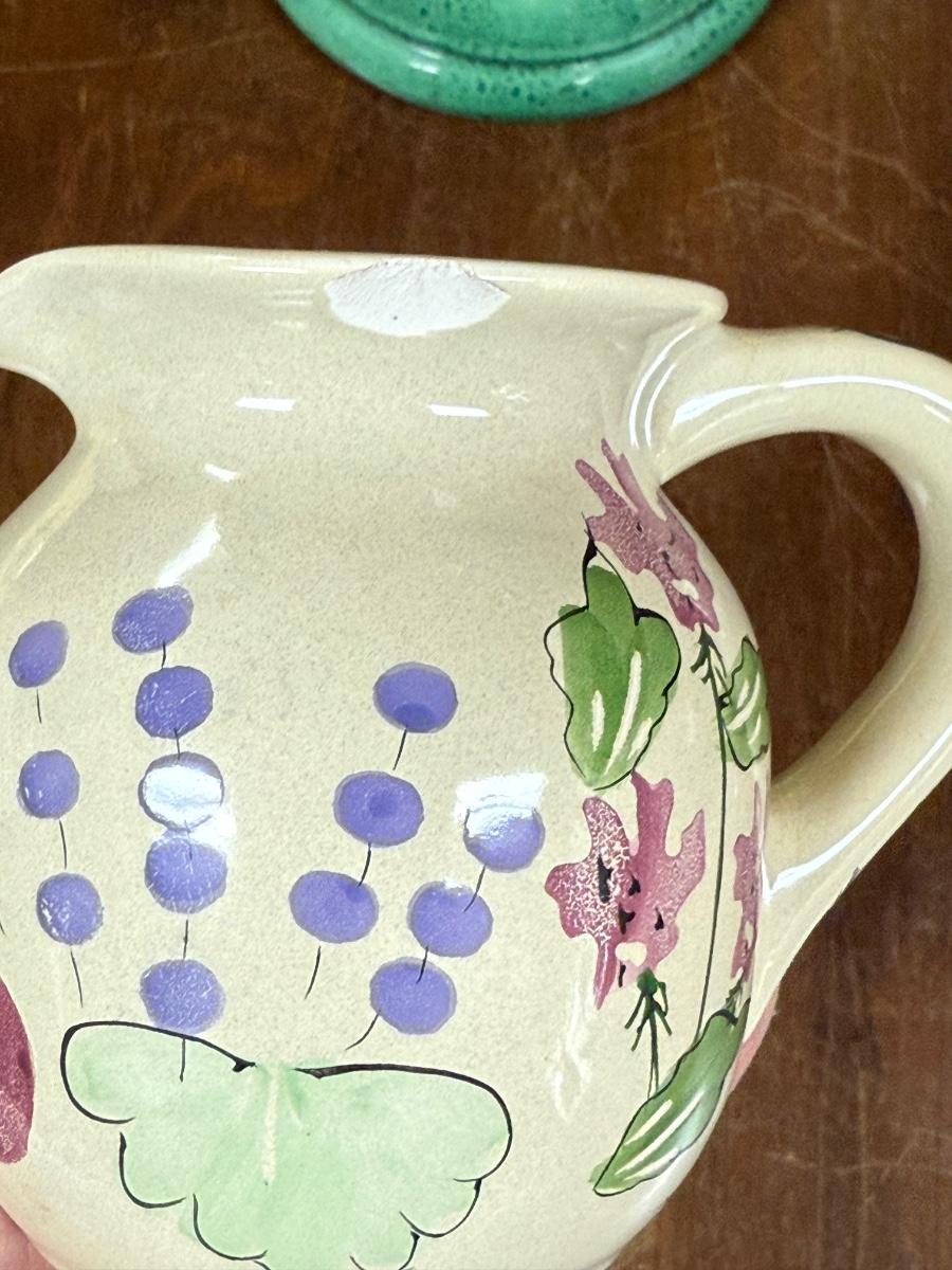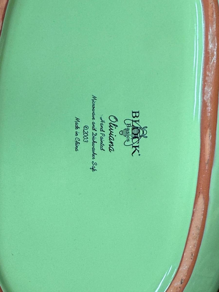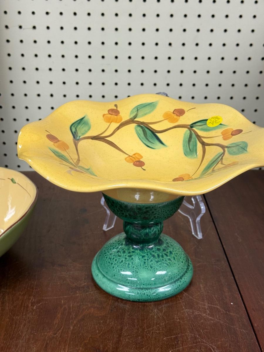 2pc pedestal bowl/pillar candle holder, creamer (chipped), Block Olive serving bowl