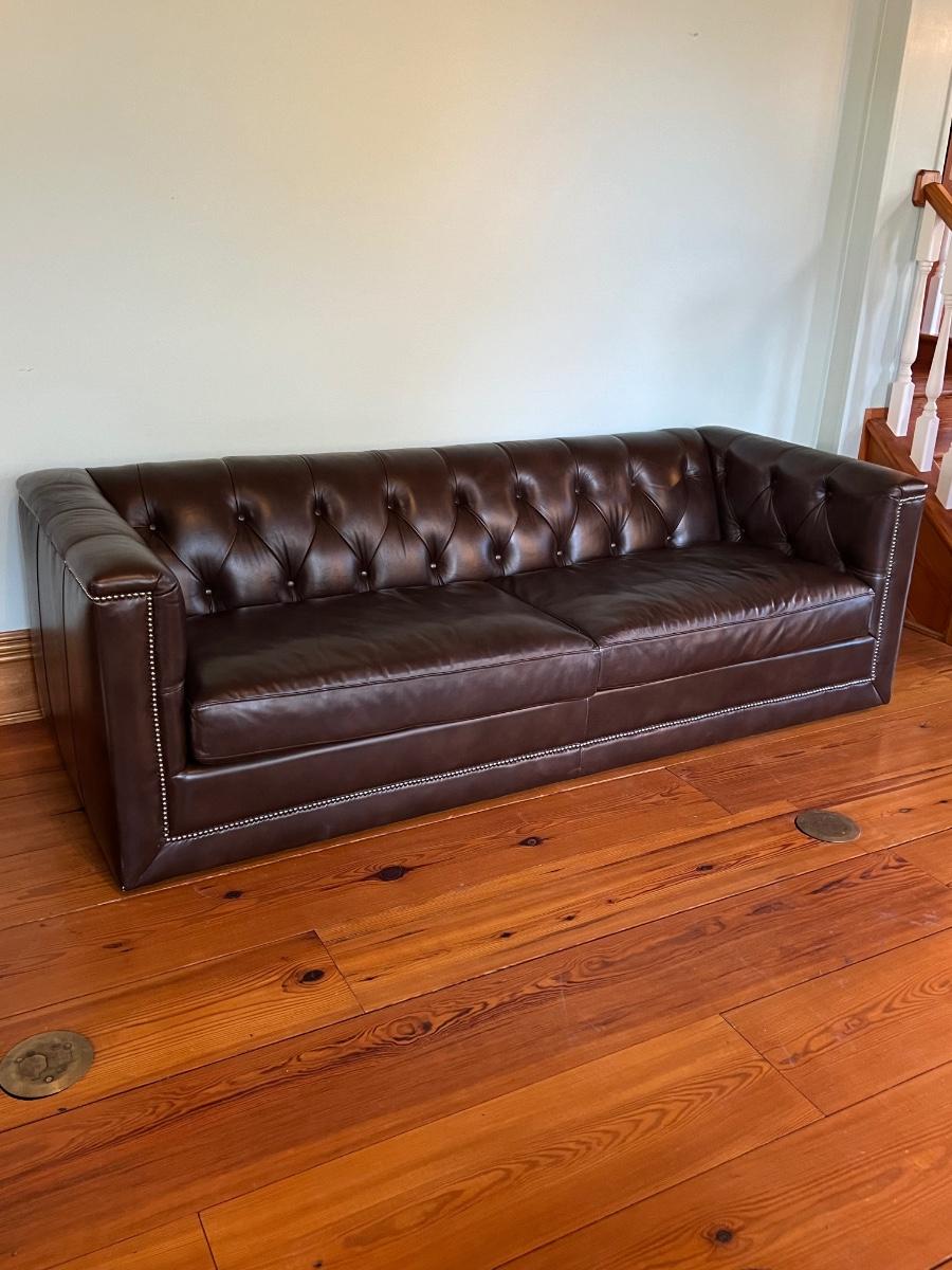 OLIVIA & QUINN ~ Tufted Nail Head Trimmed Leather Sofa