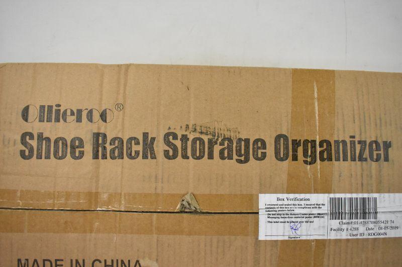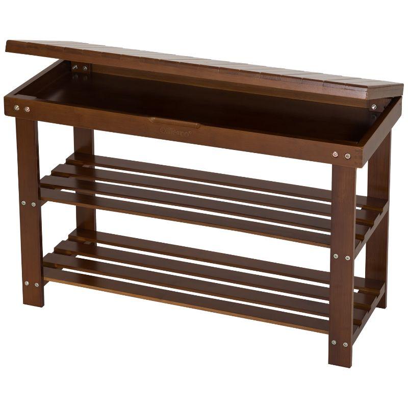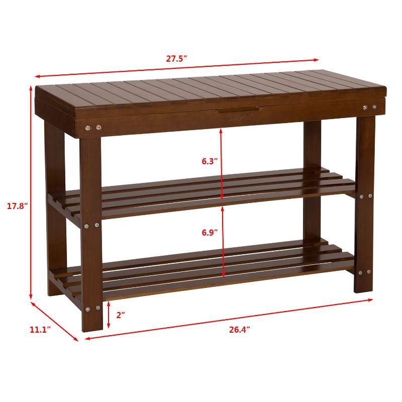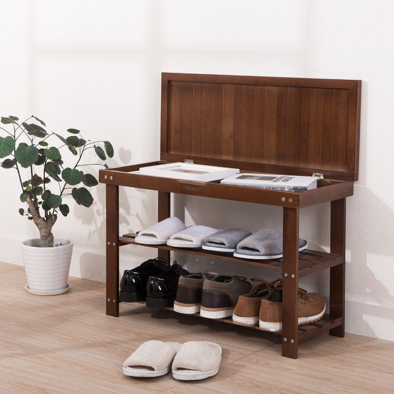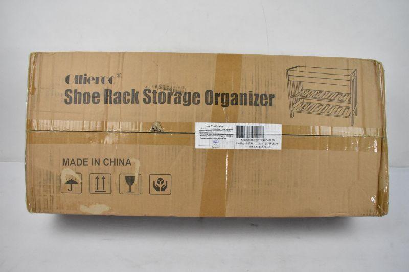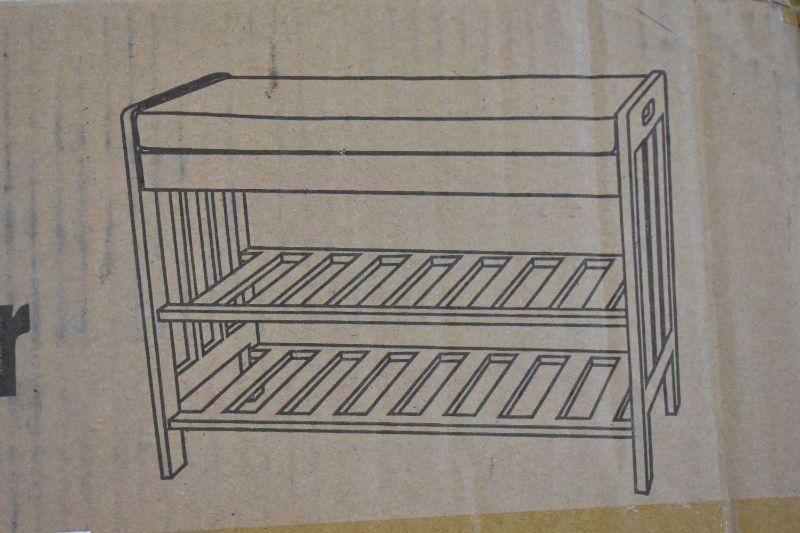 Ollieroo Shoe Rack Organizer, Dark Brown Wood and Tan Cushion - New