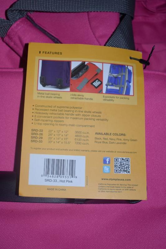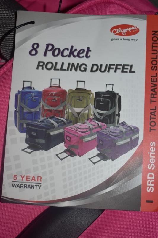 Olympia 33" 8 Pocket Rolling Duffel Hot Pink Travel Luggage Baggage - New