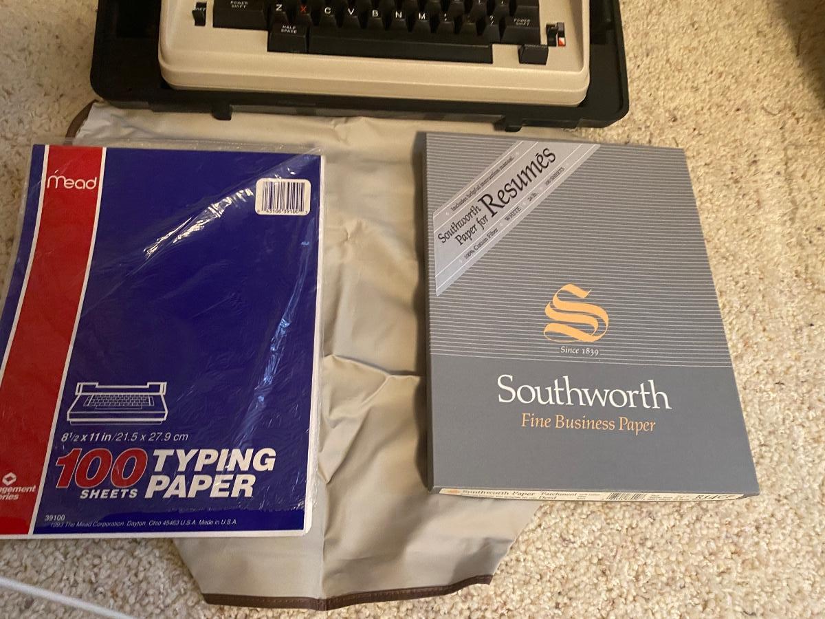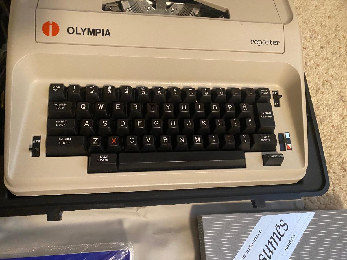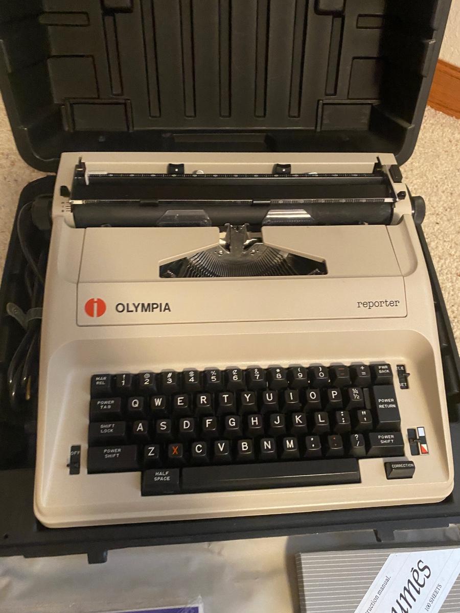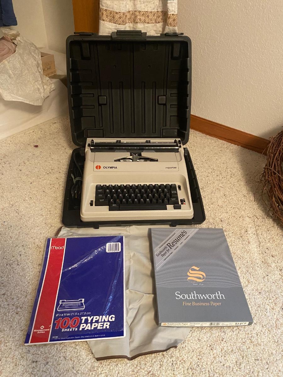 OLYMPIA MANUAL REPORTER TYPEWRITER AND AND PAPER