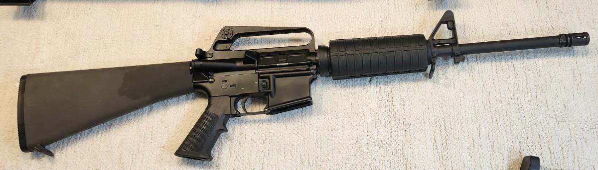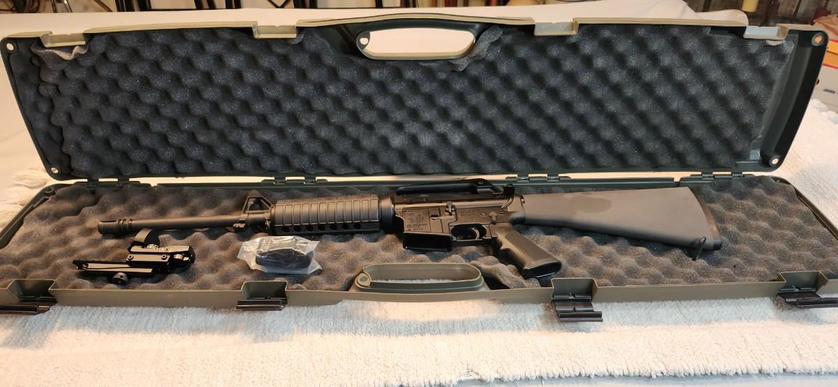 Please see pictures for condition Guns are local pick up only, they CAN Not be Shipped With valid Kansas ID/ Driver's license Olympic Arms MFR/AR15 Style Rifle 223 With case and Target Sport sight 1x22x33,