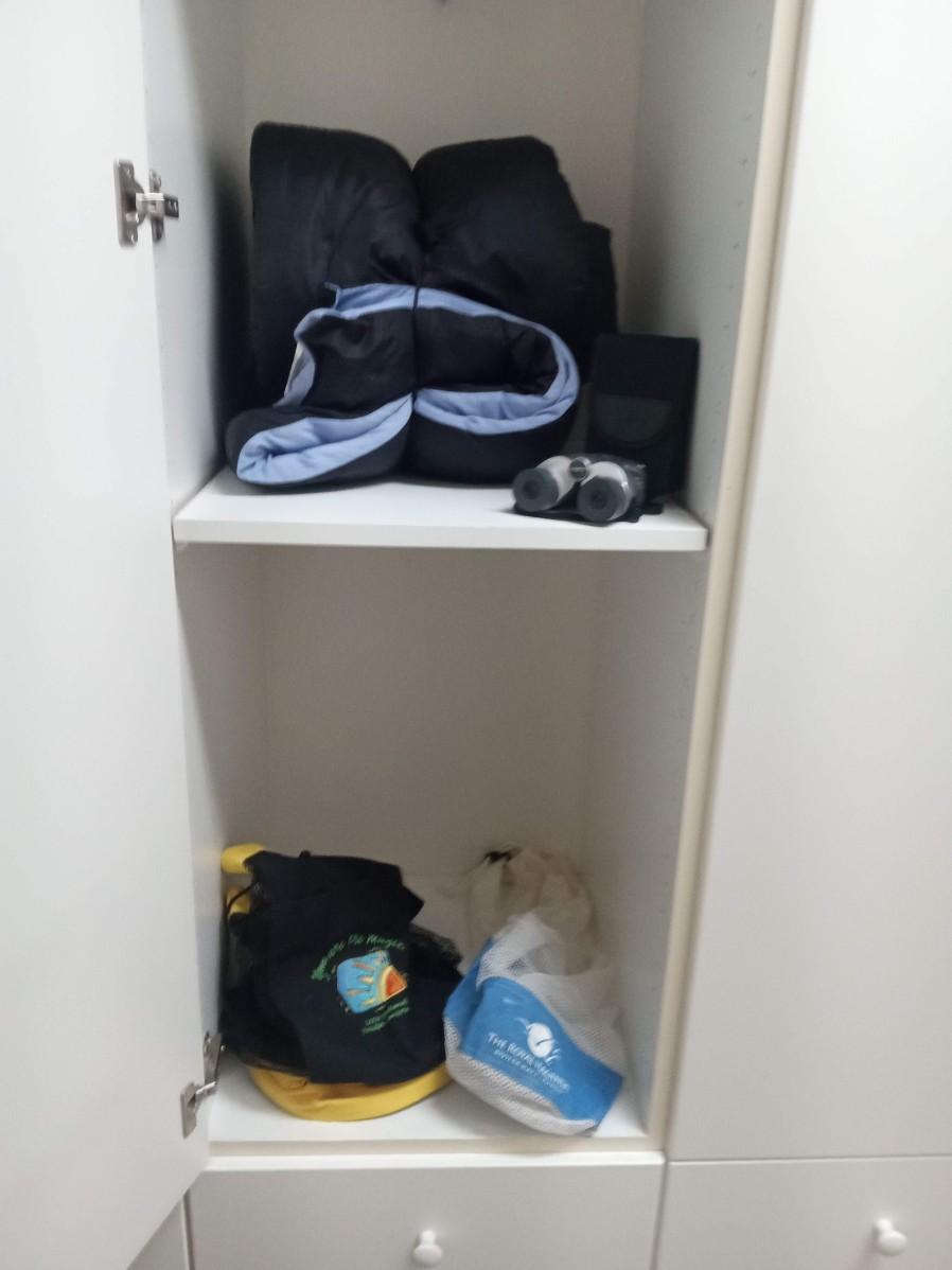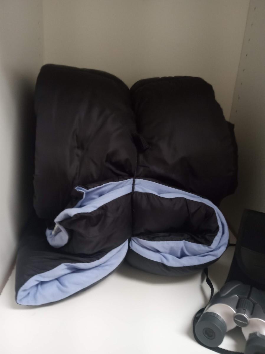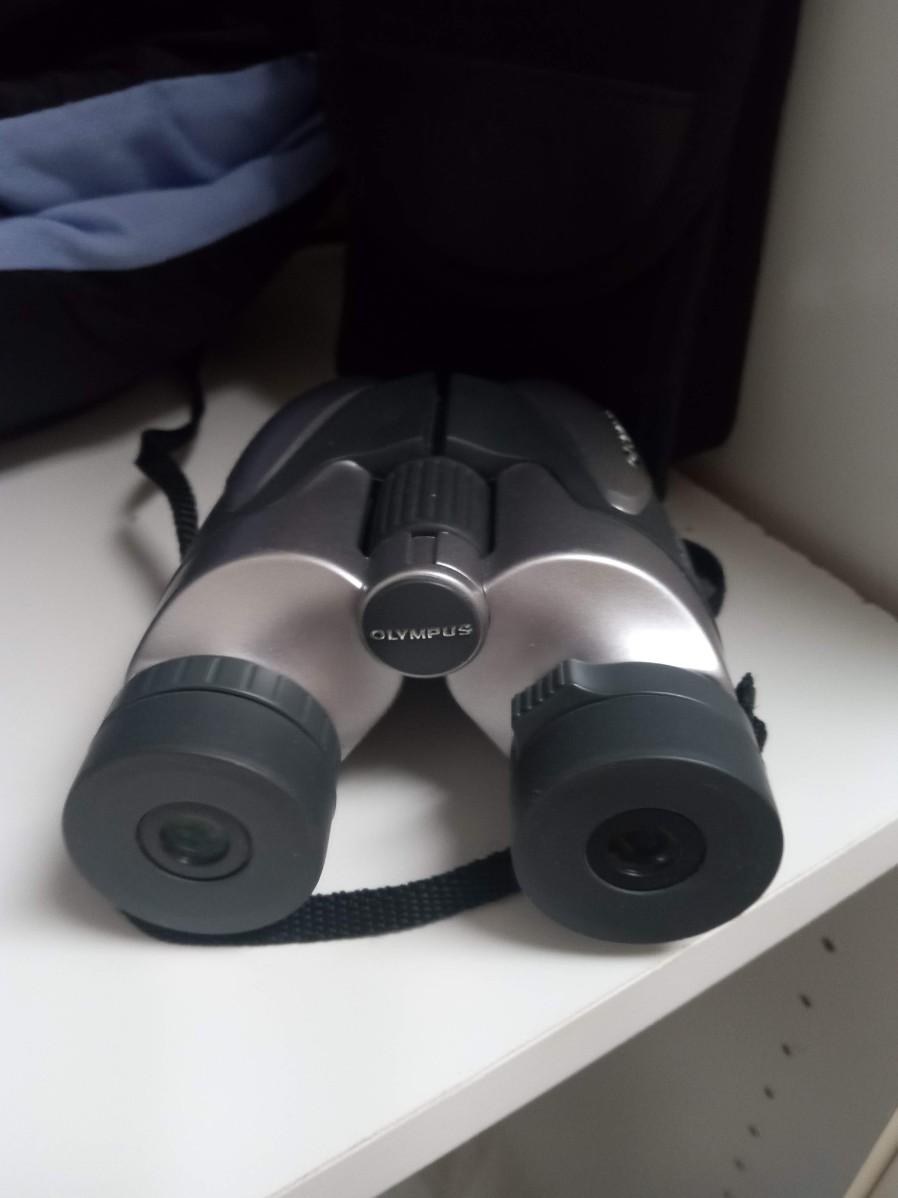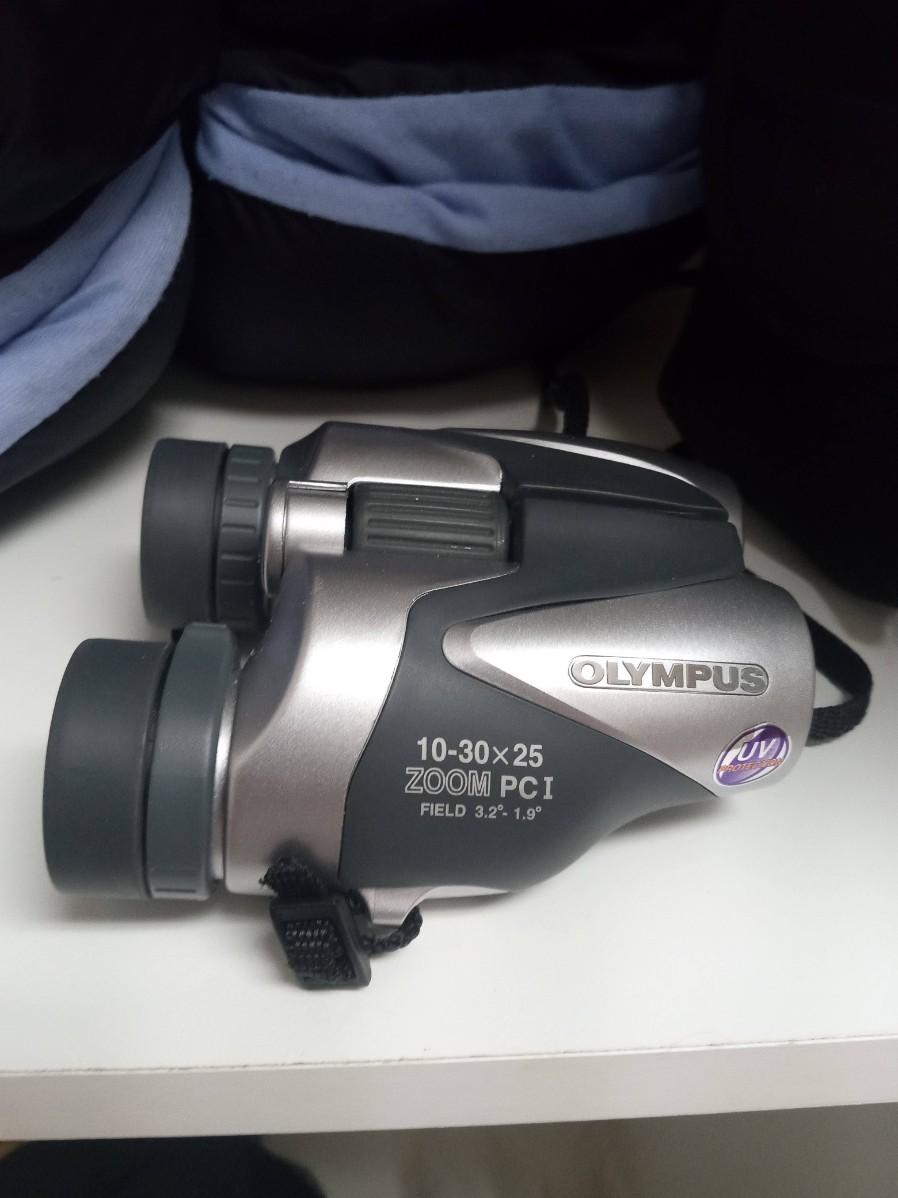 OLYMPUS 10-30X25 BINOCULARS AND A SLEEPING BAG