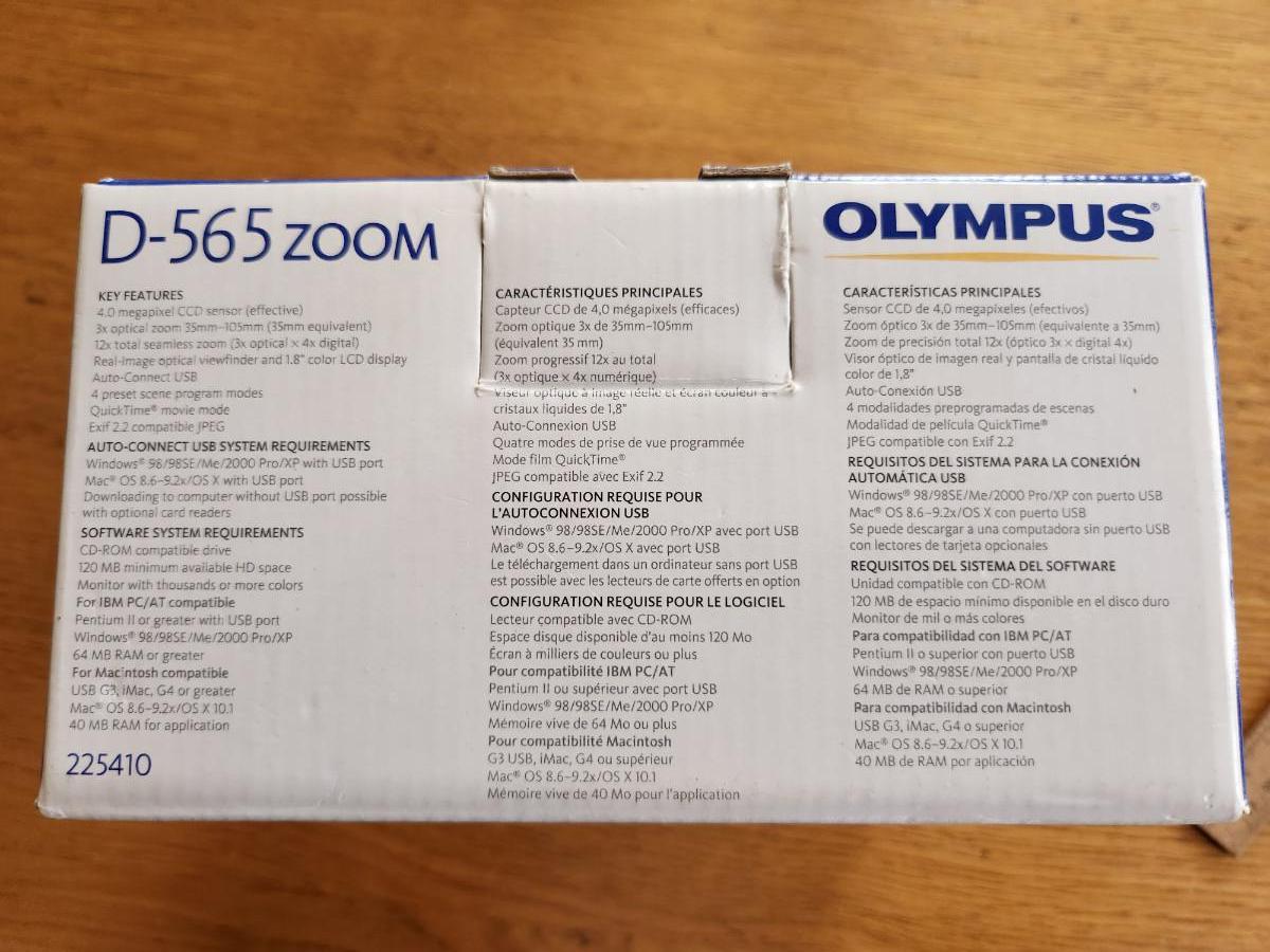 This auction lot is for a Olympus D-565 Zoom Digital Camera. Check photos for all the details. If you are into older school digital cameras - here you go. Appears to be barely (if at all) used. With box and all associated disks, clips and paperwork.