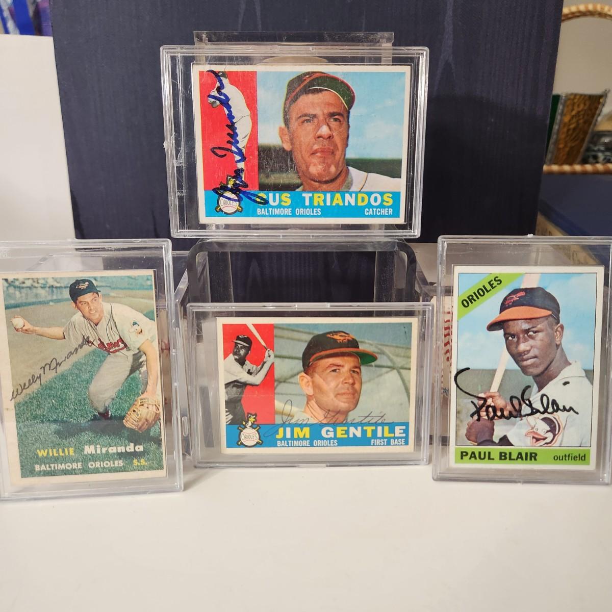 4 Baltimore Orioles Baseball Cards Signed Autorgraphed Gus Triandos Jim Gentile Paul Blair Willie Miranda
