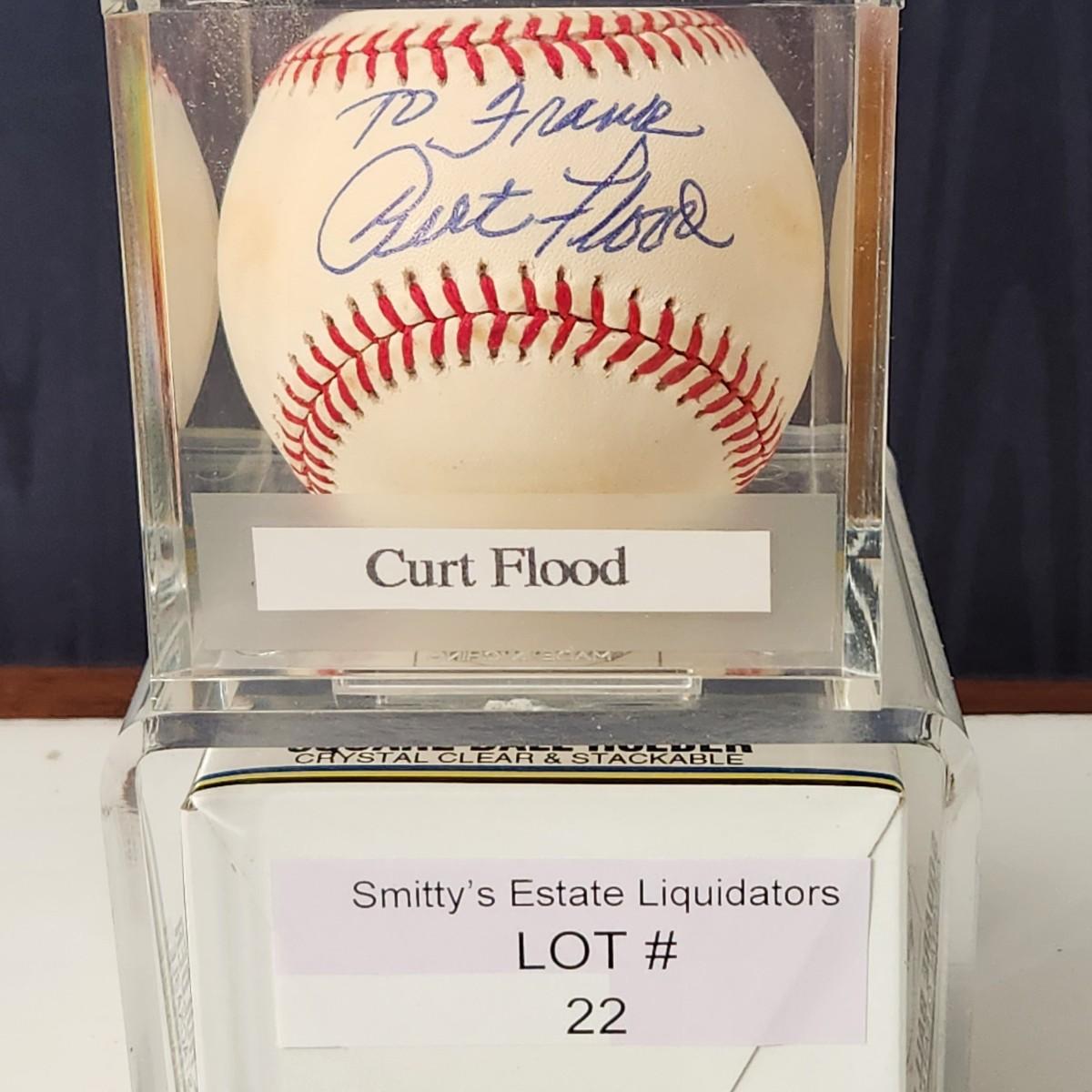 Curt Flood OMLB Signed Autographed Baseball In Collectors Case