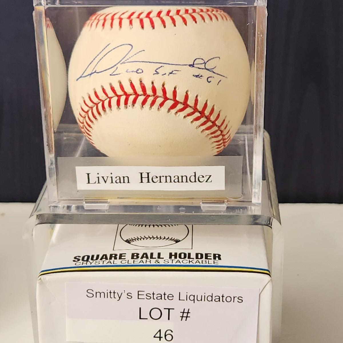 Livian Hernandez Giants OMLB Signed Autographed Baseball In Collectors Case
