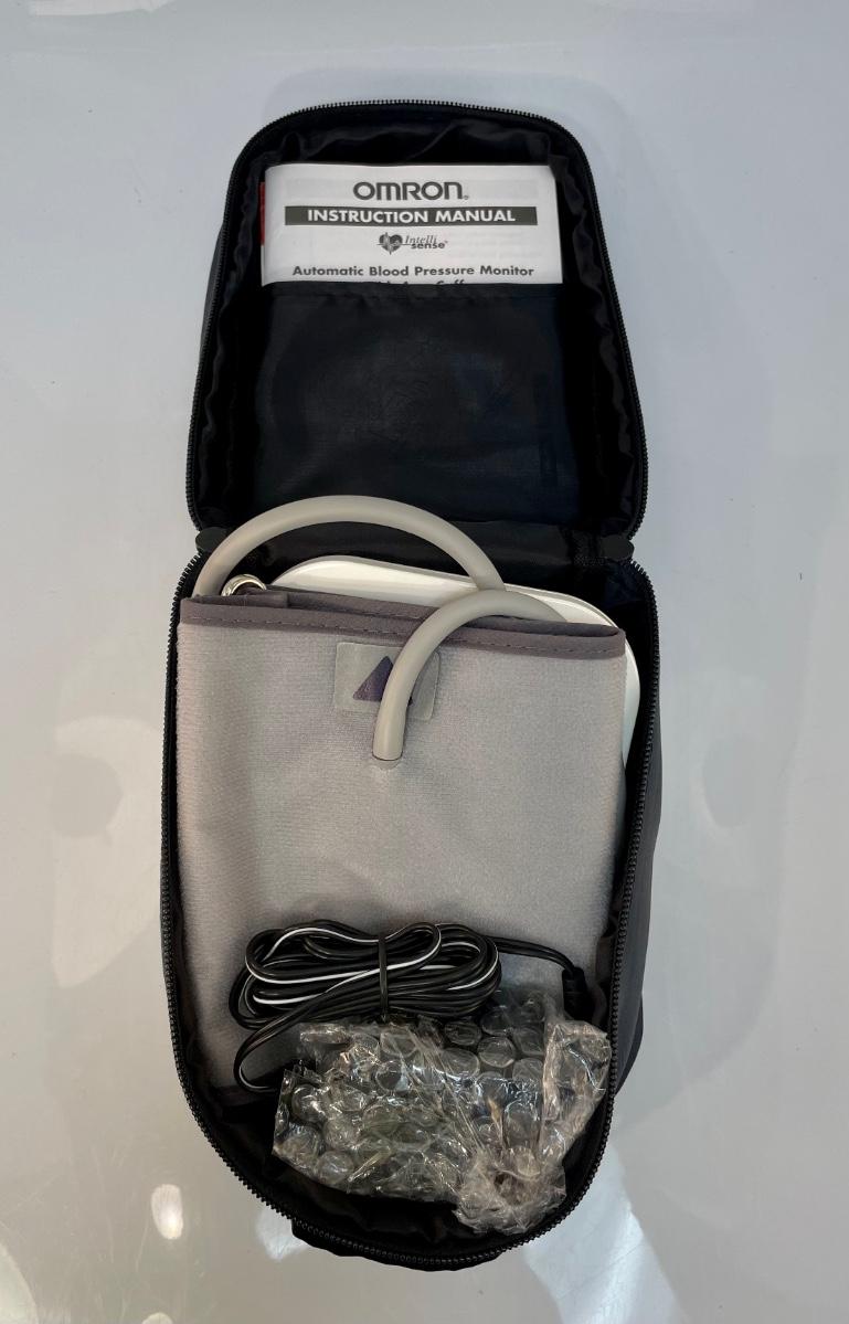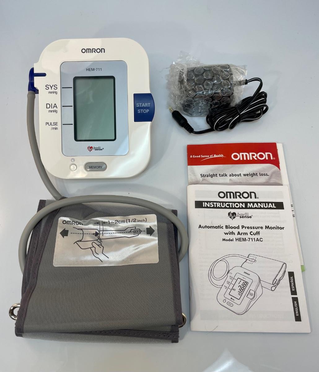 Omron Automatic Blood Pressure Monitor with Arm Cuff and Case. Includes instruction booklet. Tested, works as expected.