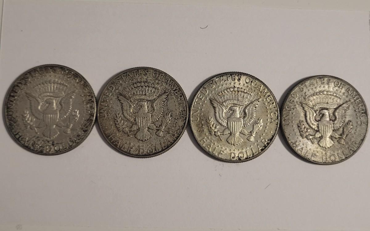 4 KENNEDY HALF DOLLARS - ONE 1965, ONE 1966, TWO 1967