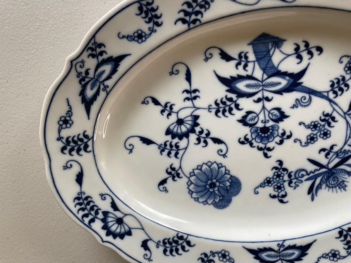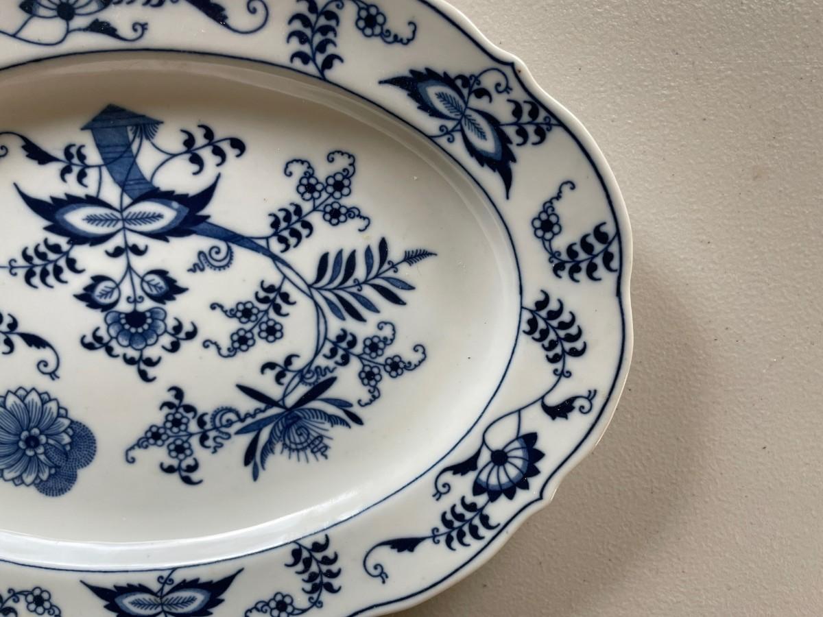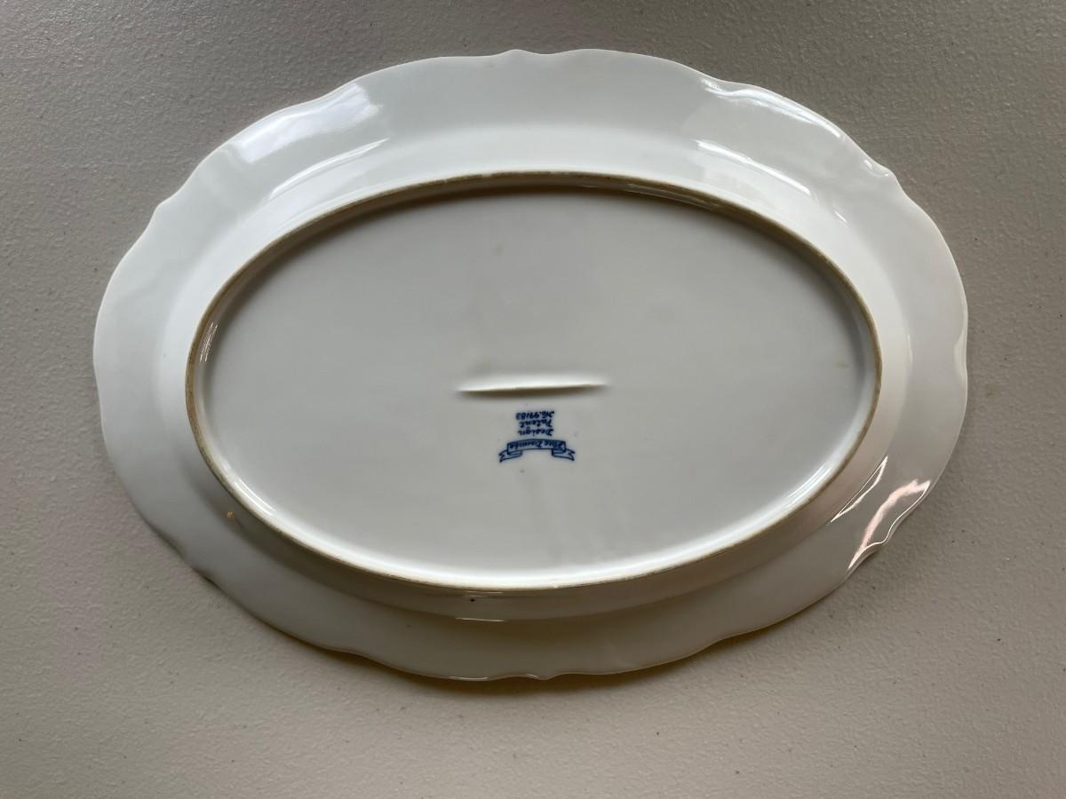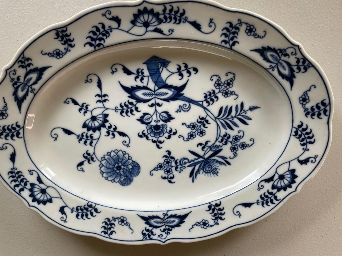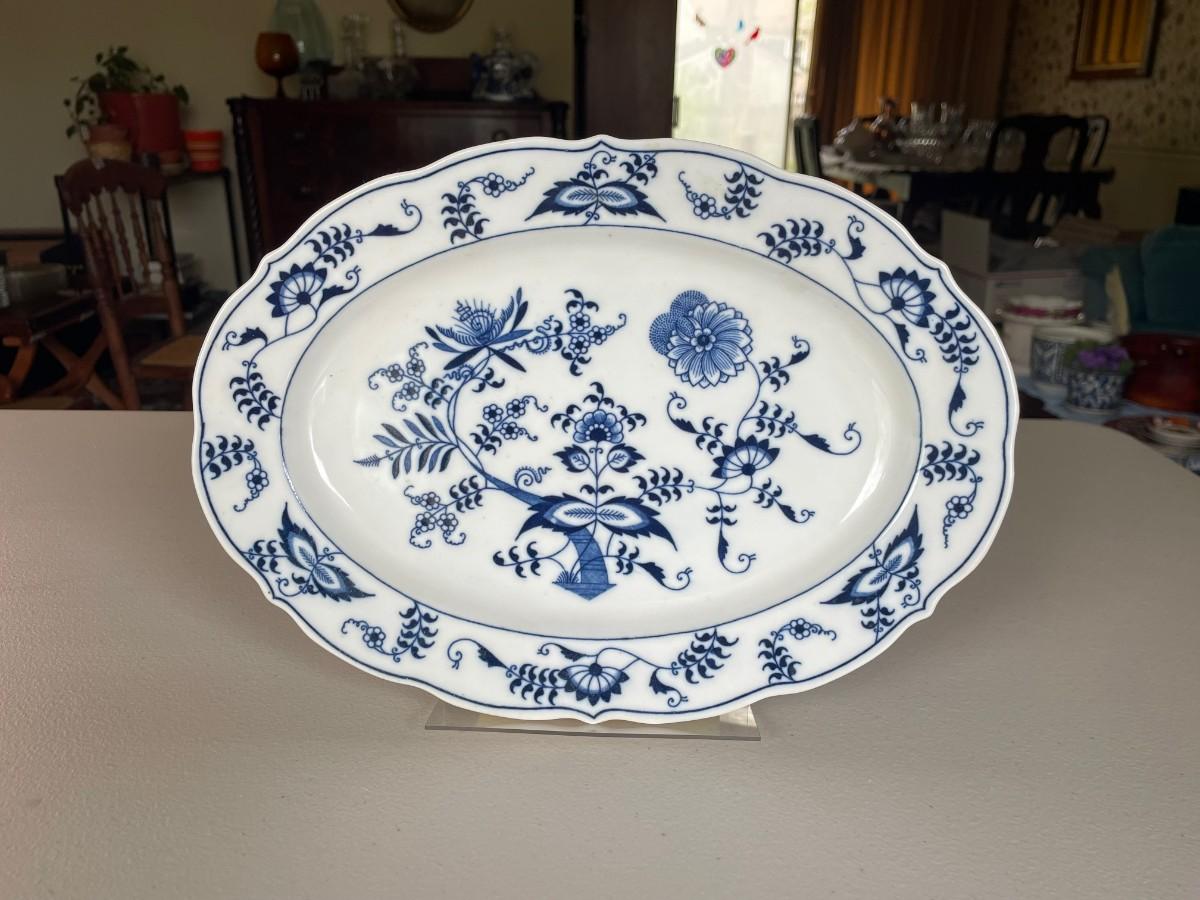 Design Patent No. 99183 Blue Danube stamped on the bottom of the dish. 12”(w).