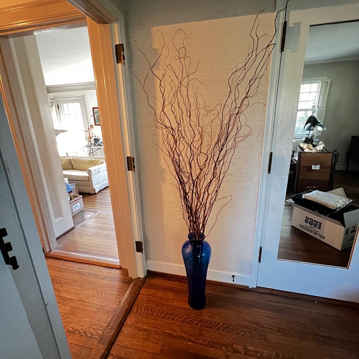 One Cobalt Blue Glass Floor Vase & Willow Branch Decor (DR-RG)