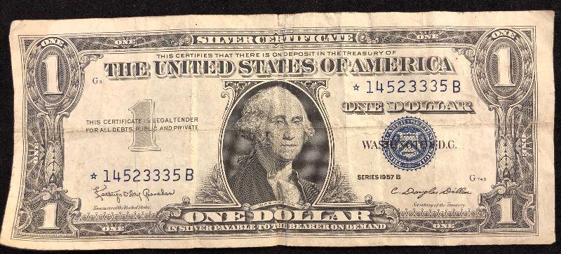 One Dollar Siver Certificate Blue Seal Series 1957 B