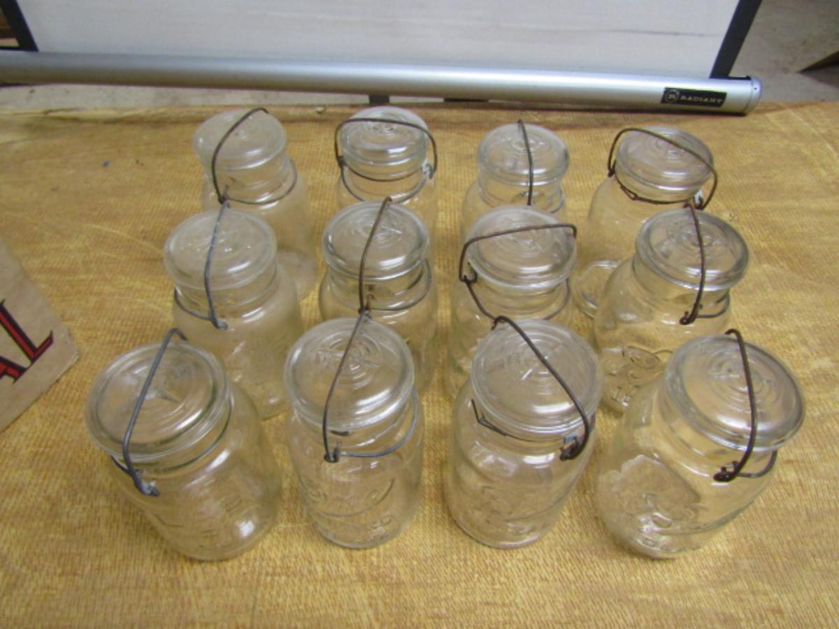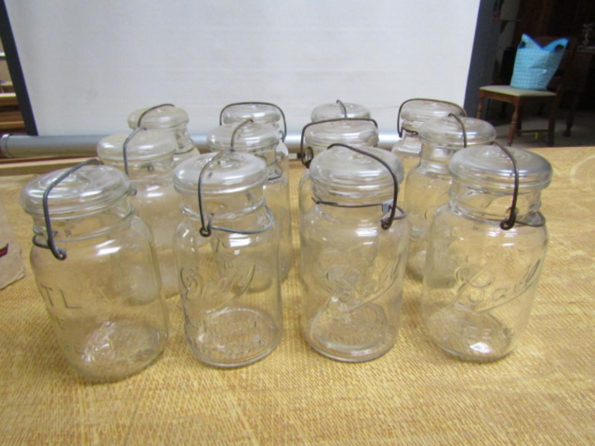 One Dozen Antique Quart Size Bale Top Jars- Assorted Makers (Choice F)