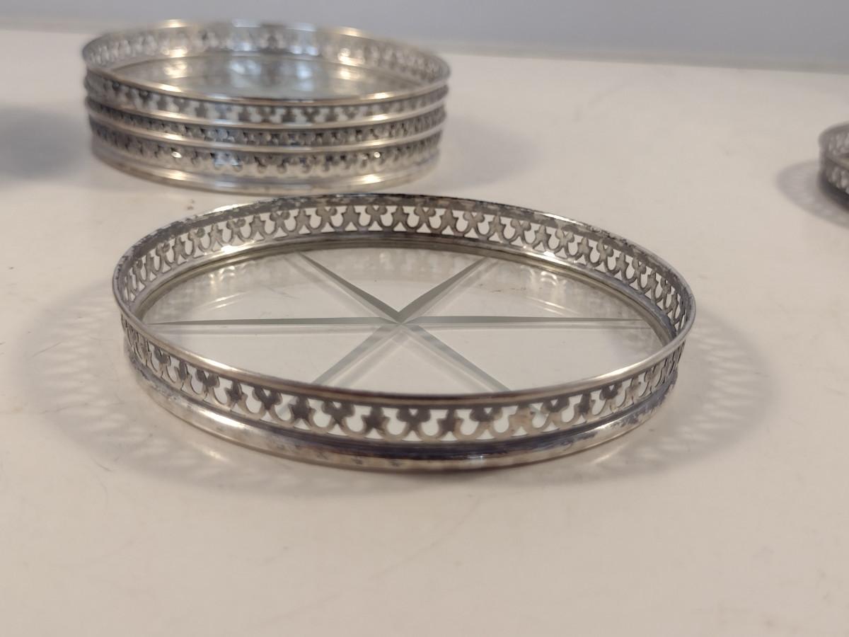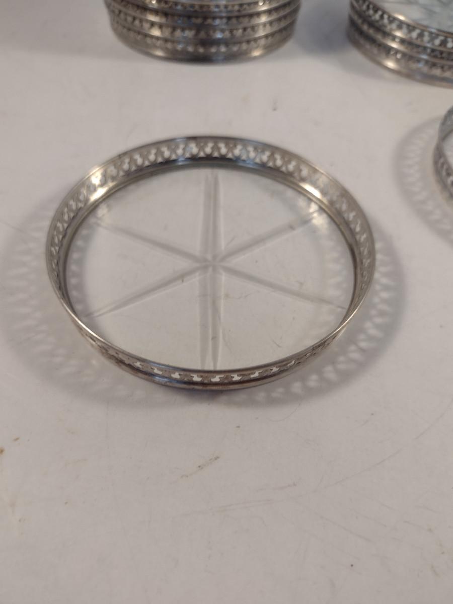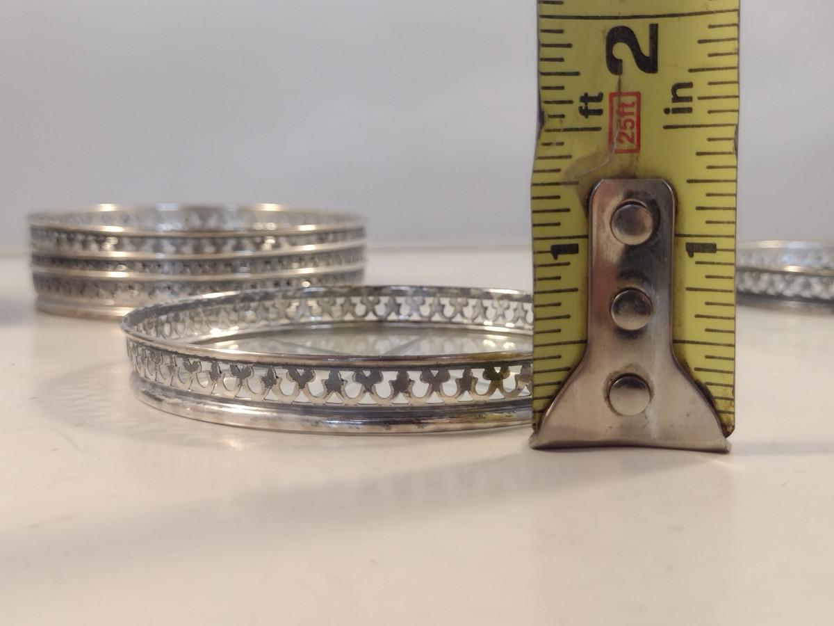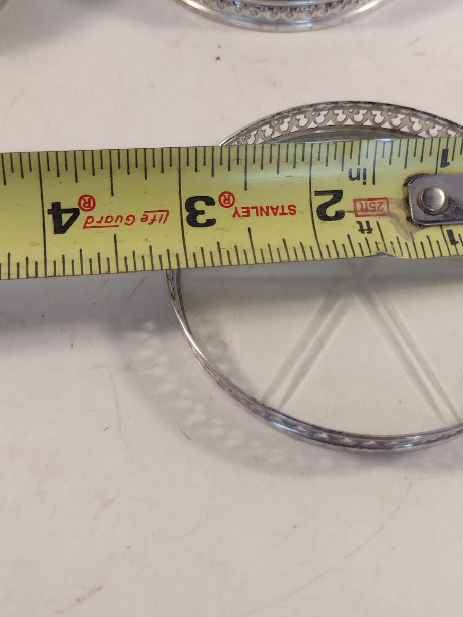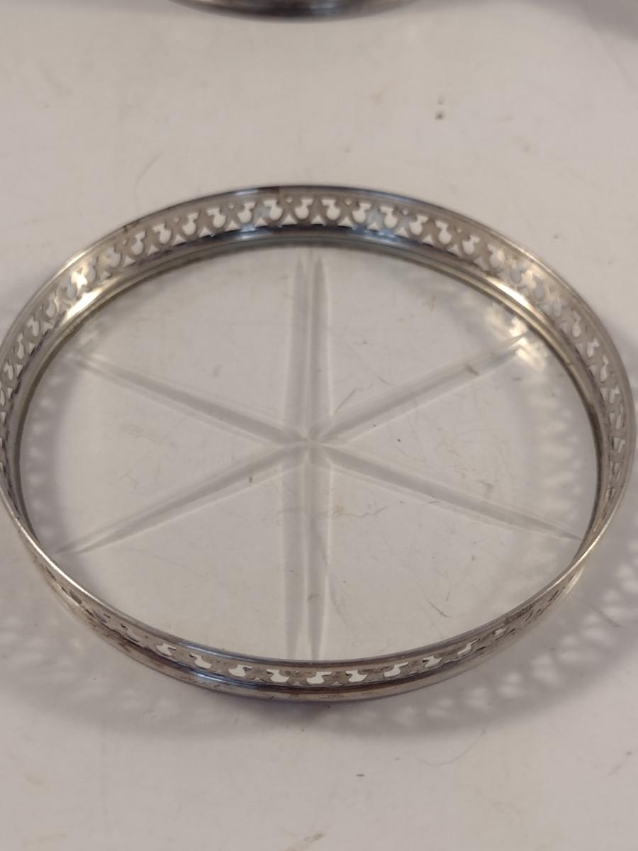 One Dozen Antique Sterling Silver and Glass Beverage Coasters- Approx 3" in Diameter