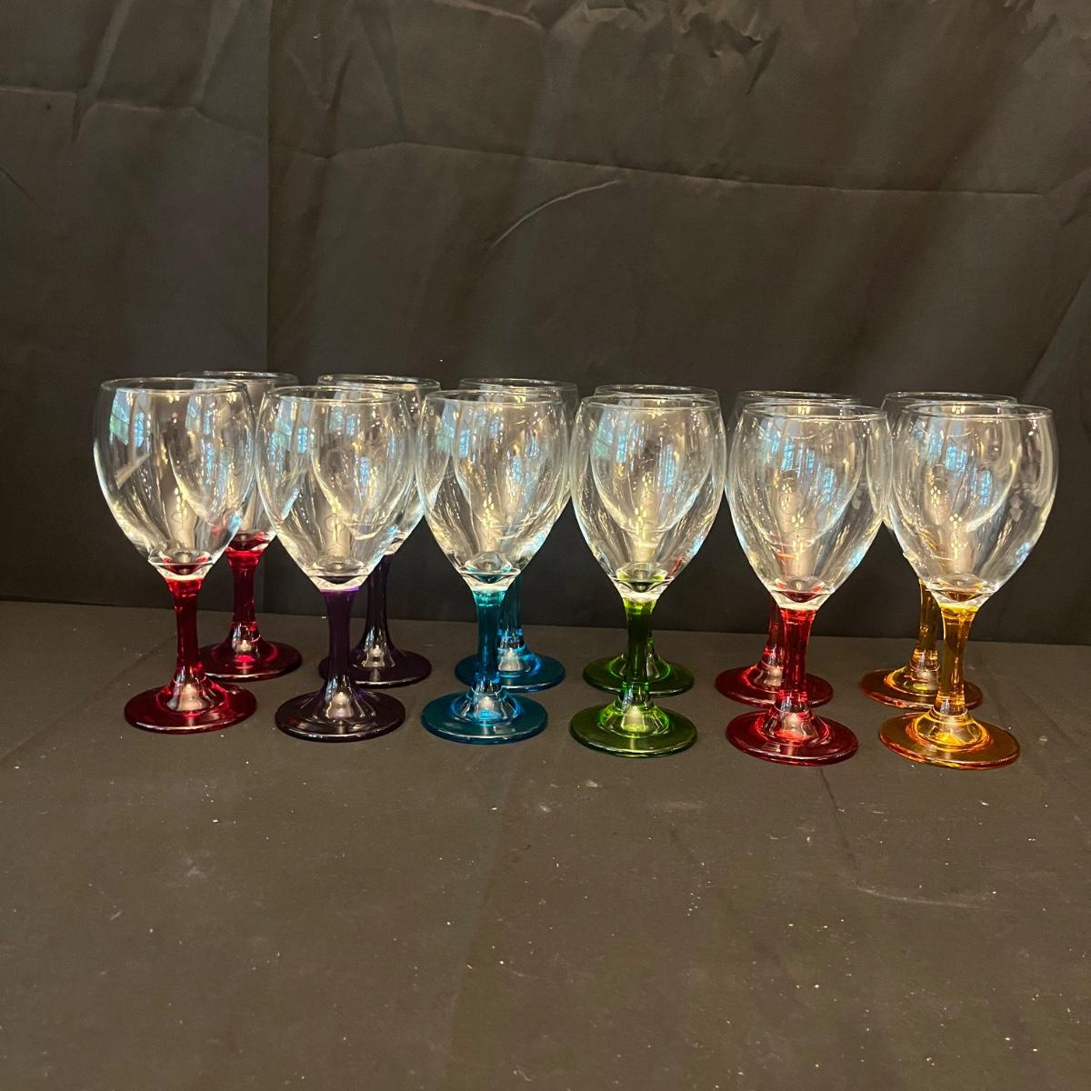 One Dozen Studio Crystal Wine Glasses W/ colorful Stems (K-MG)