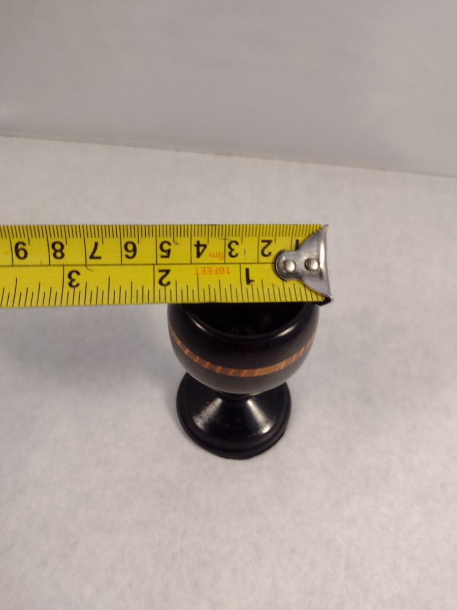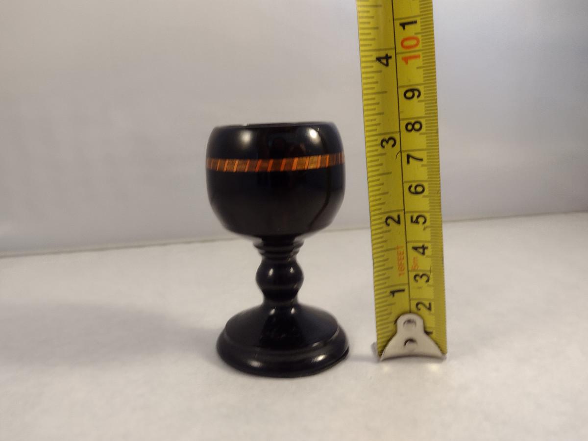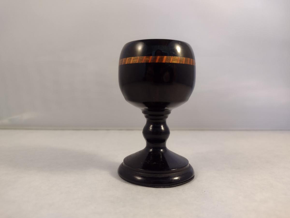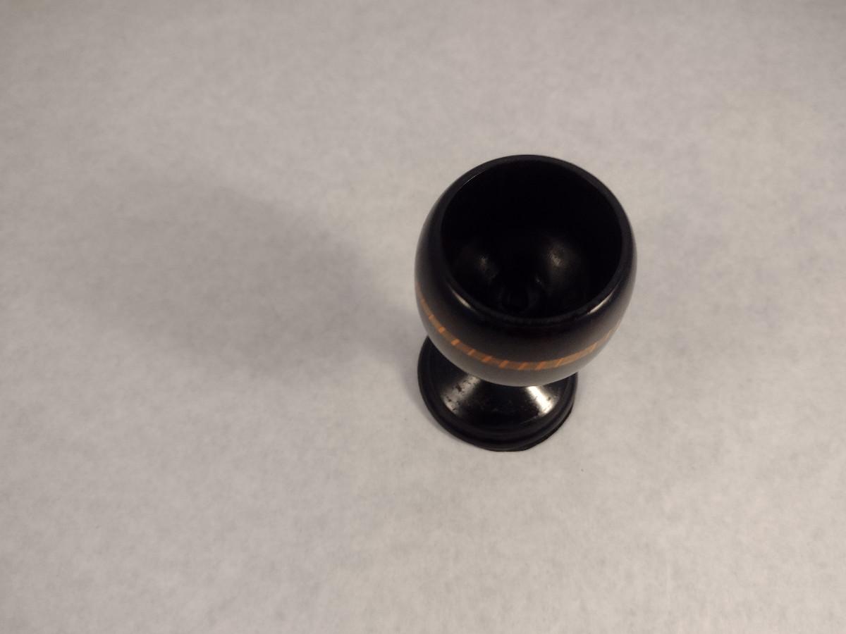 One Hand Crafted Turned Wood African Ebony Goblet with Intricate Inlay. Created by Isle of Man artist Michael Baker. Approx 3 1/4" tall.