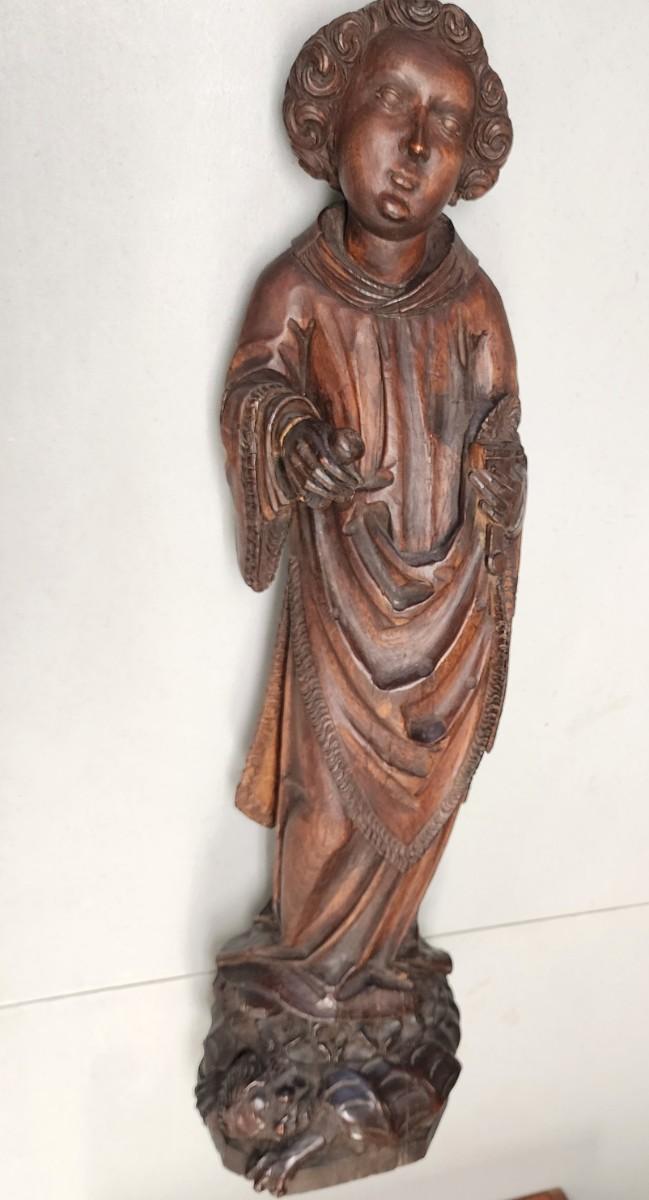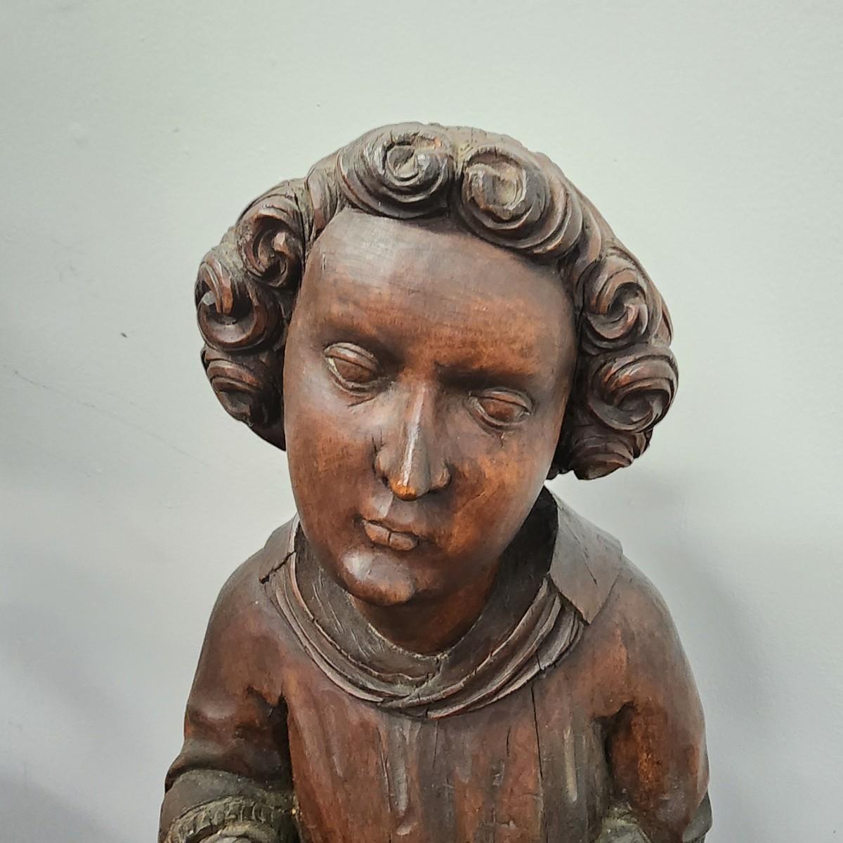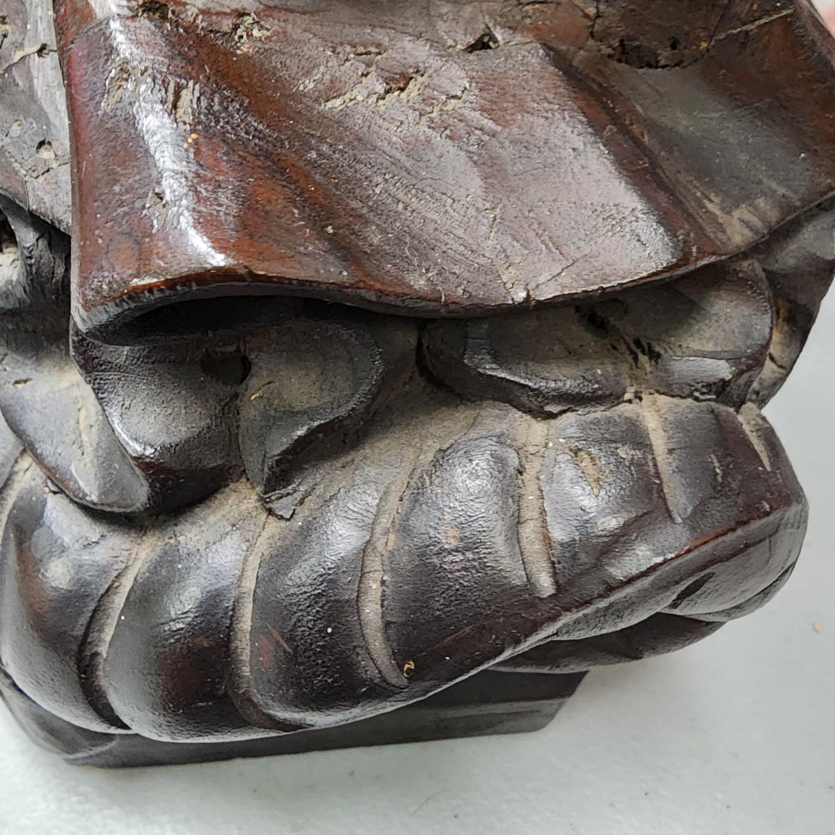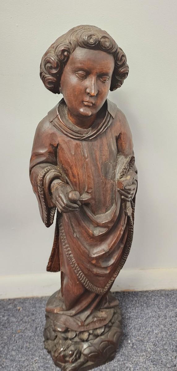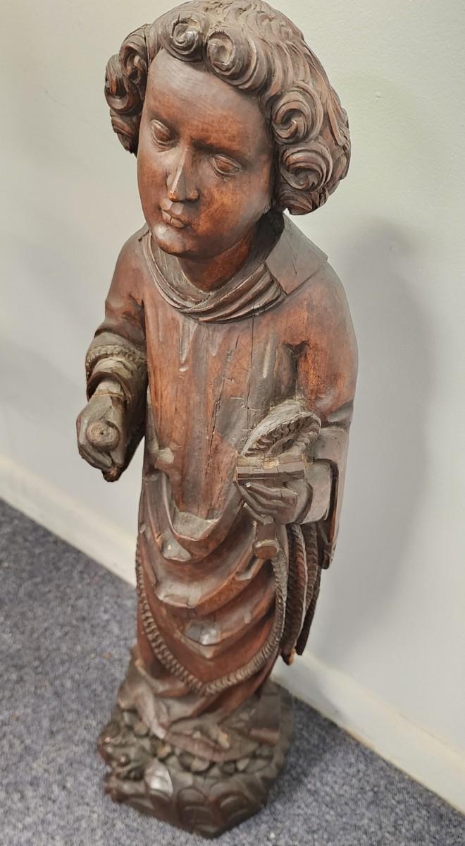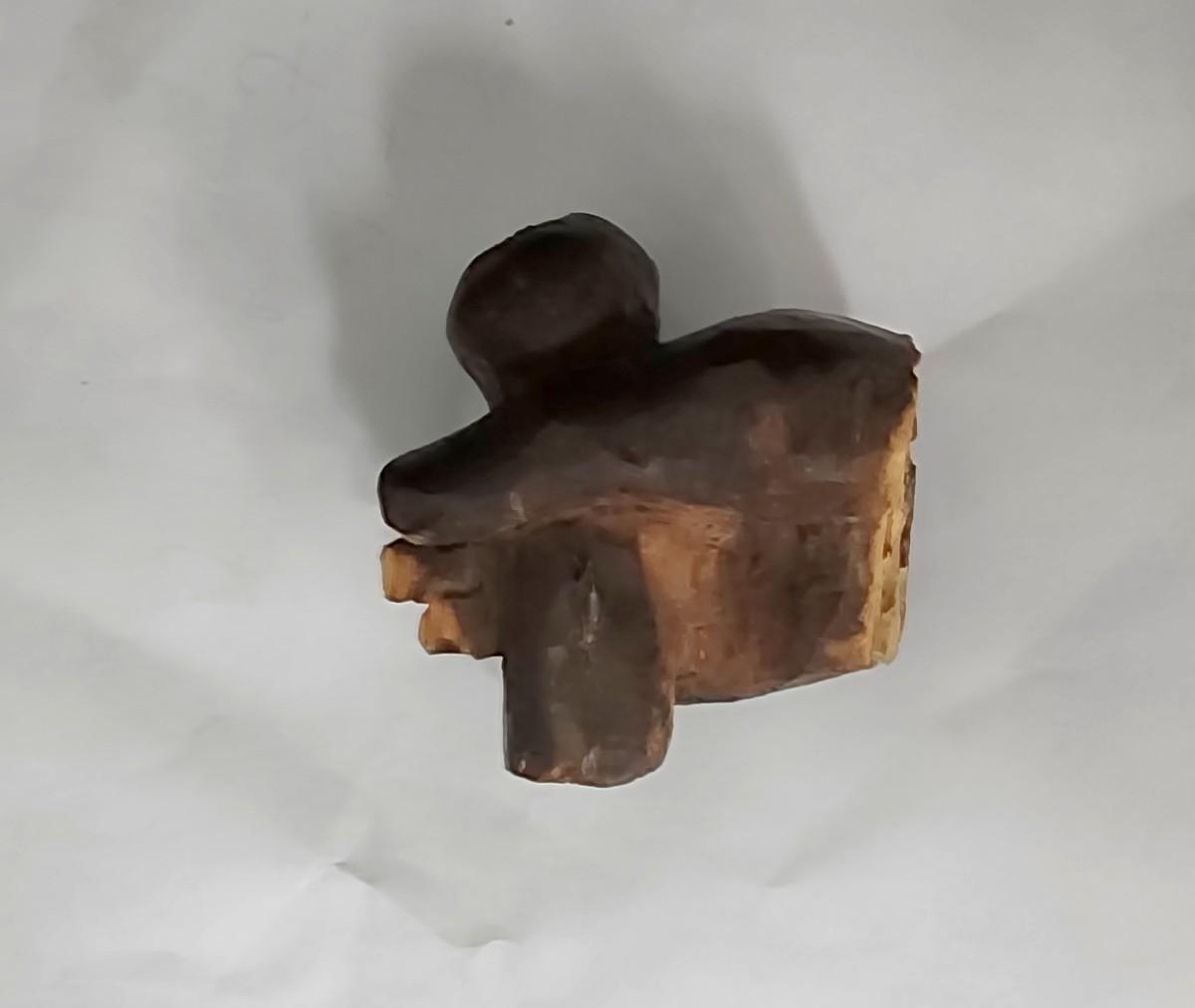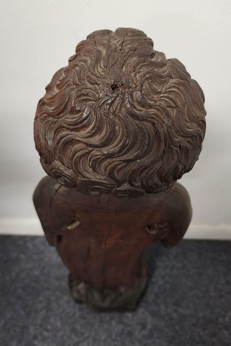Very old, hand has been repaired with a nail and glue but came loose again, will need to be re-glued. A few chips and damage, please see photos as they are the best description.