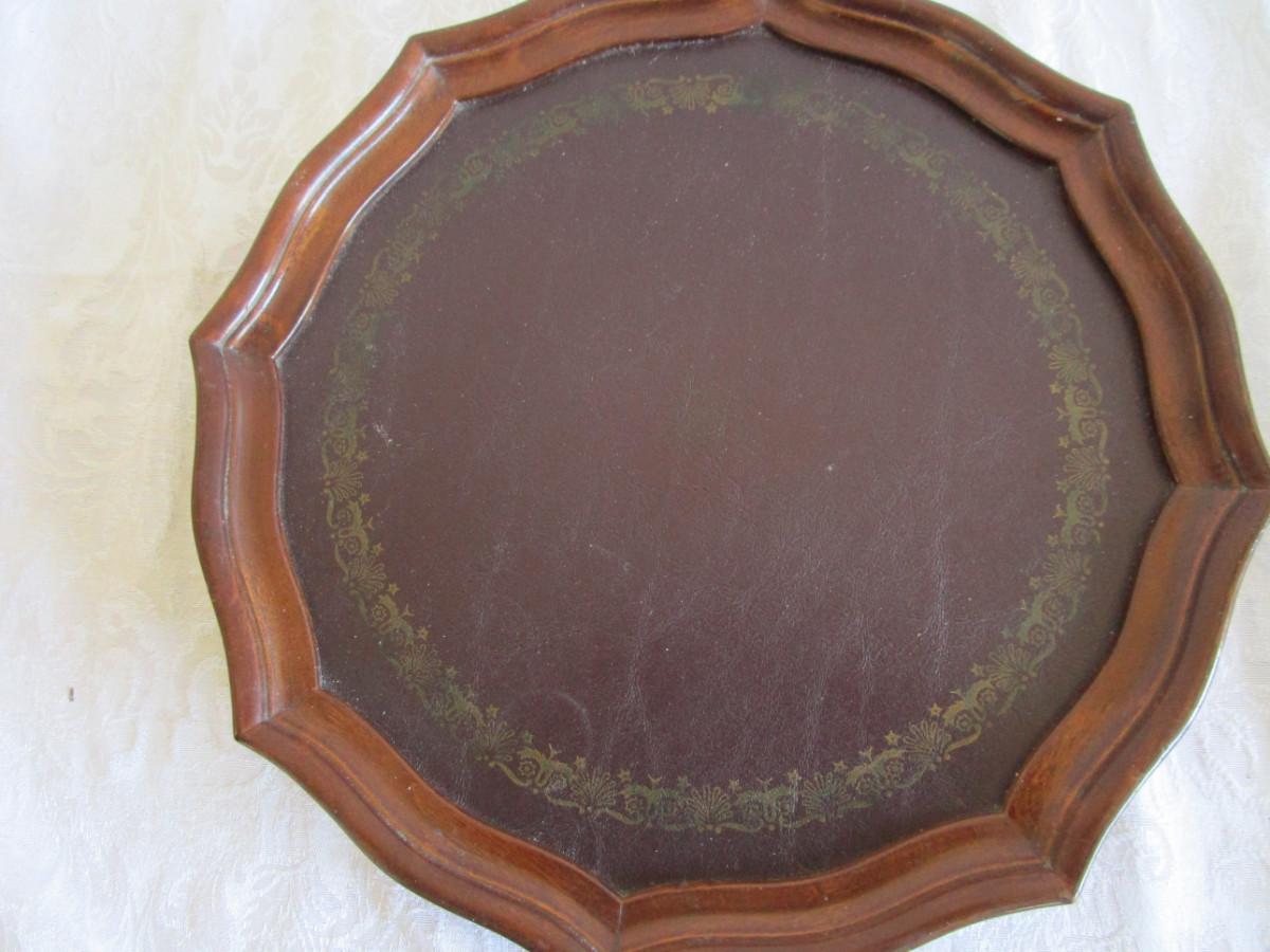 Mahogony Wood and leather table top made into a Lazy Susan 12.5" around