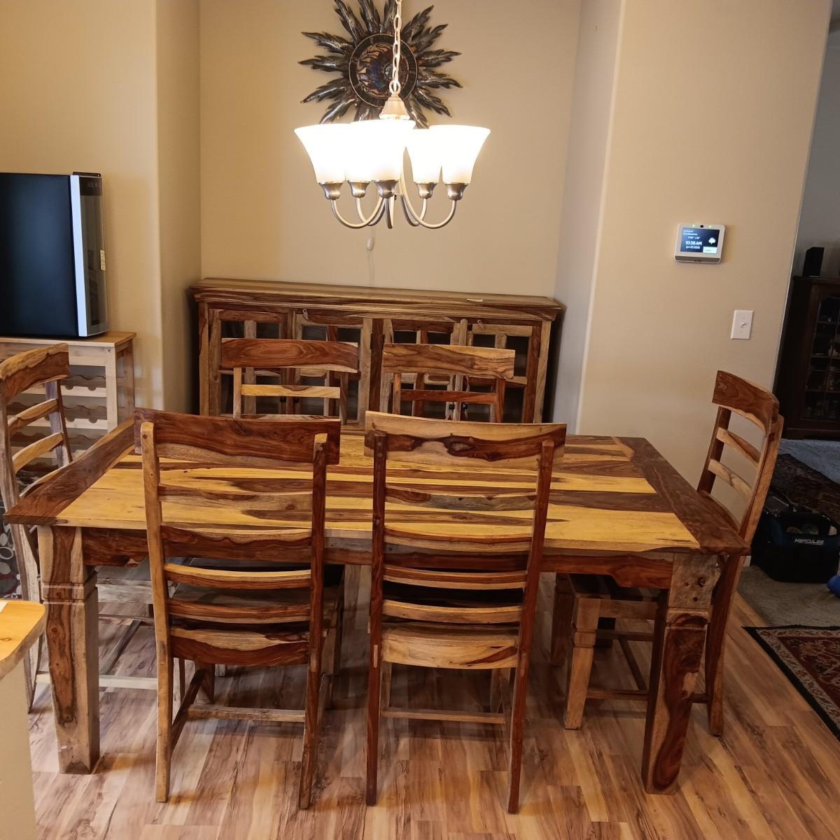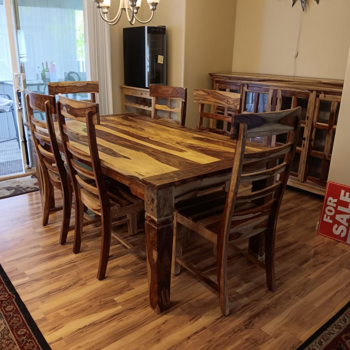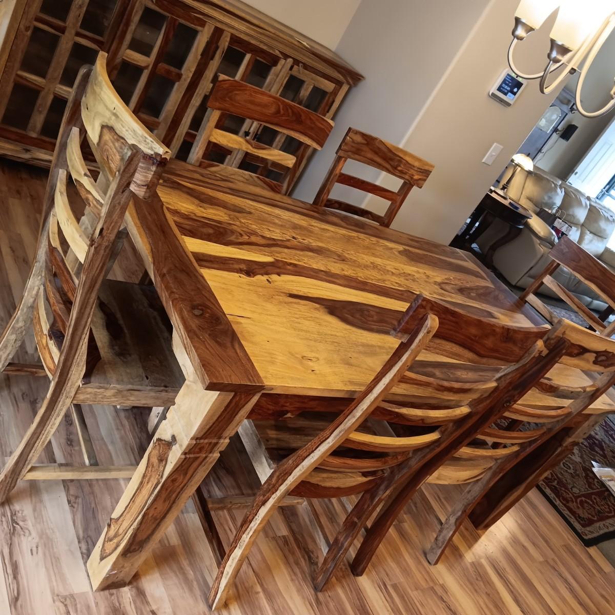 ONE OF A KIND SHEESHAM WOODEN TABLE W/6 CHAIRS