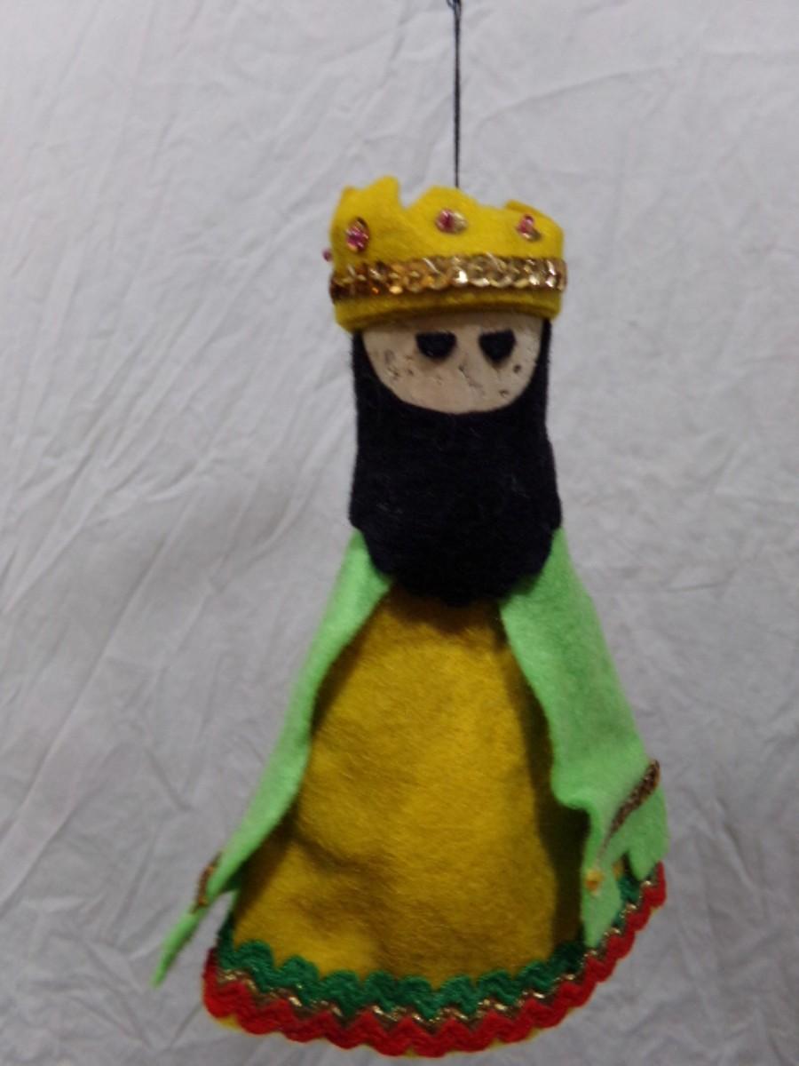 Hand crafted of felt material, one of the wise men tree ornament