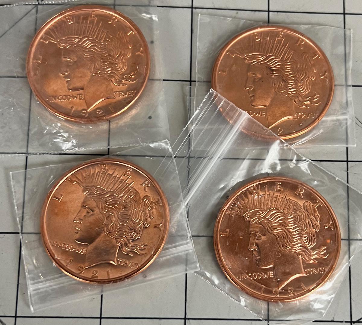 One Ounce Copper Bullion (4) Liberty Head