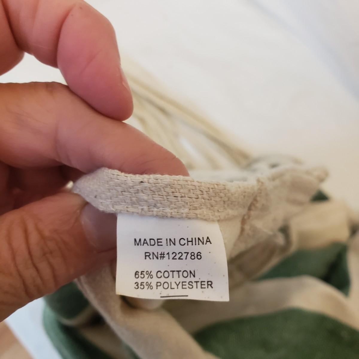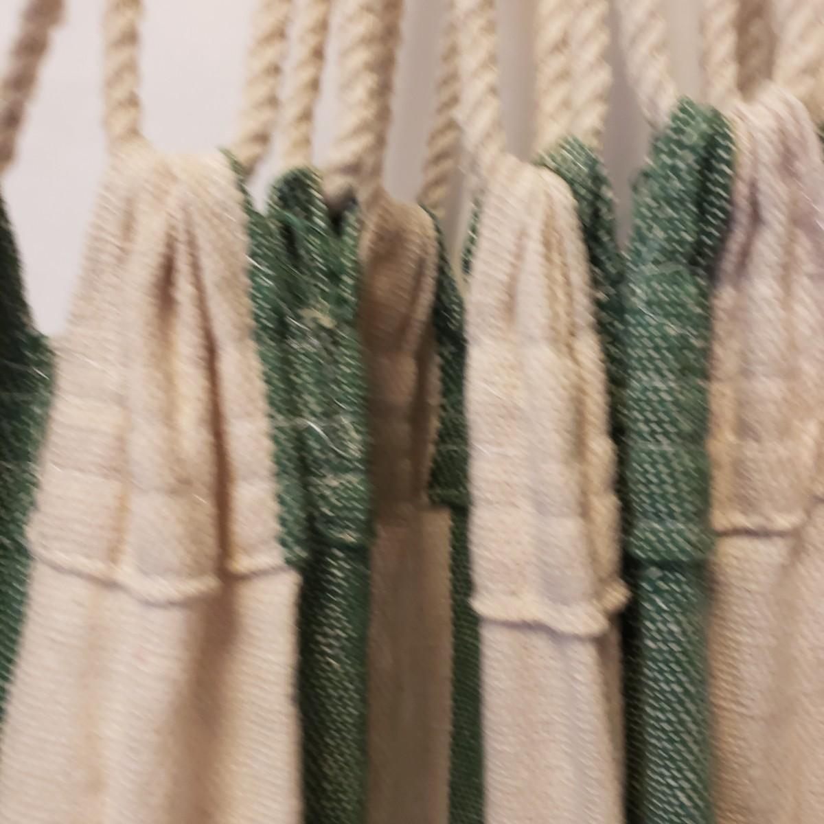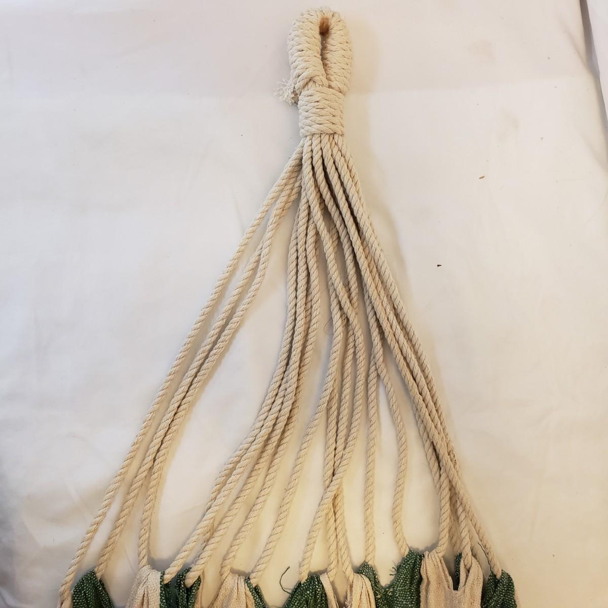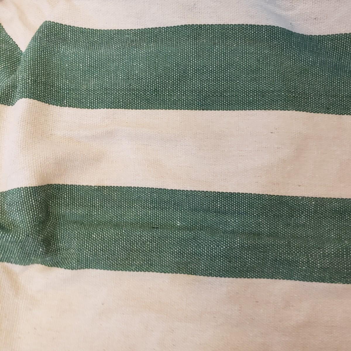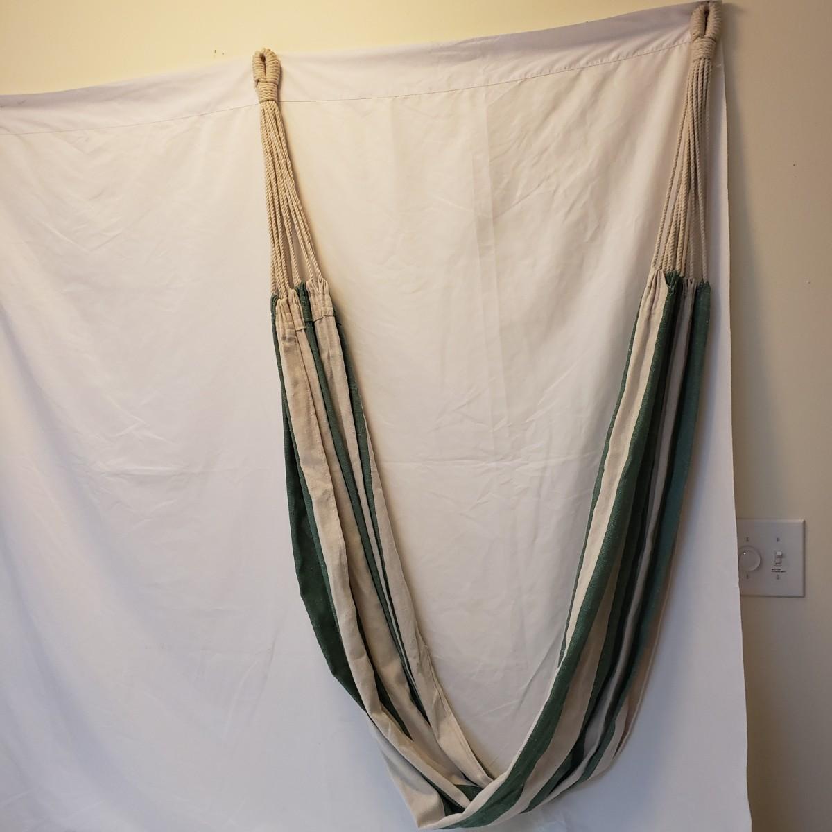 This cotton/polyester blend hammock would be perfect on a sunny day. It has green stripes and roped ends for an easy hang up. It measures 30" x 80".