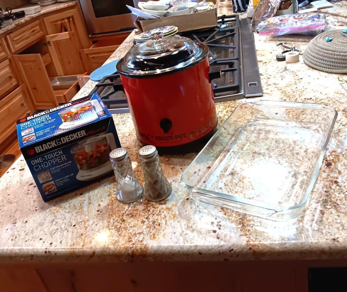 ONE TOUCH ELECTRIC CHOPPER, CROCK POT AND GLASS BAKING DISH