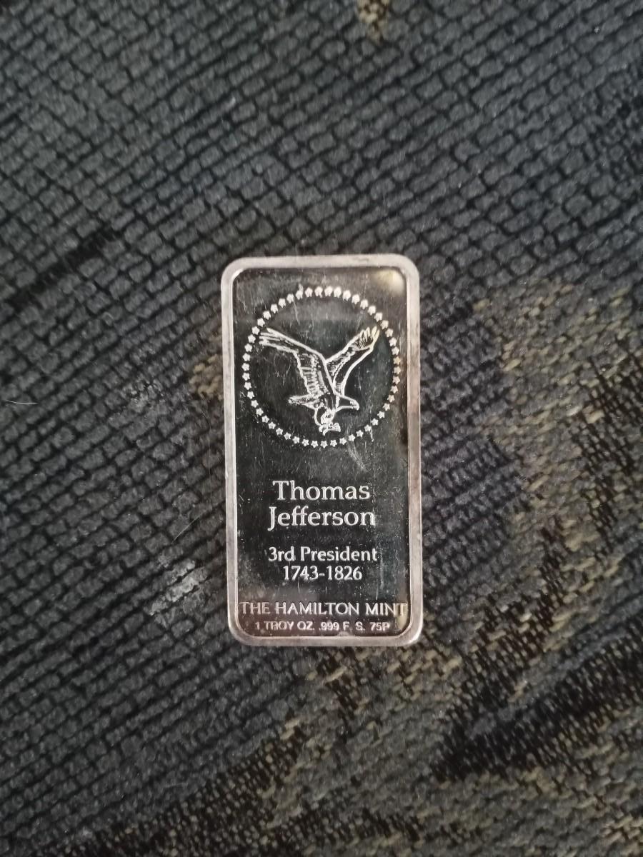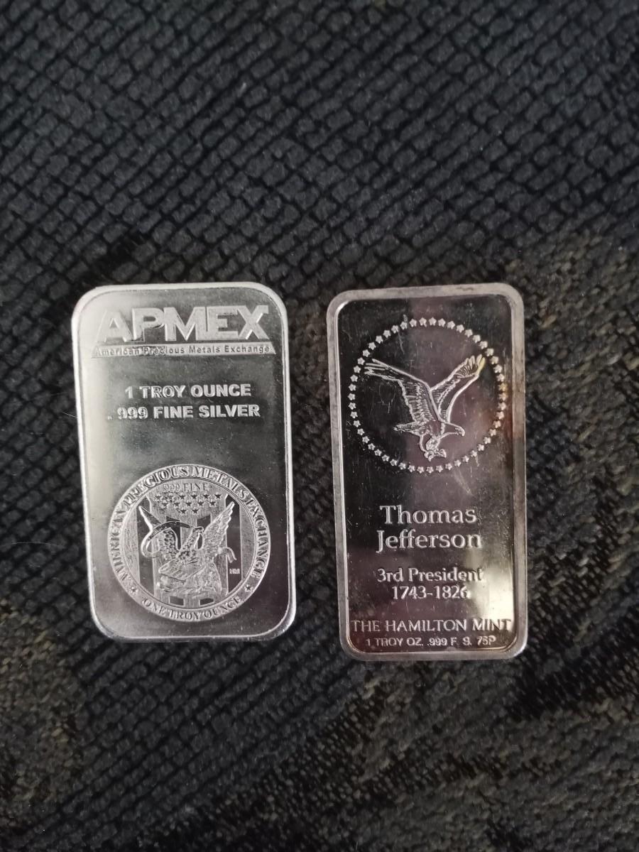 ONE TROY OUNCE ,999 FINE SILVER EACH "THOMAS JEFFERSON" & APMEX EXCHANGE