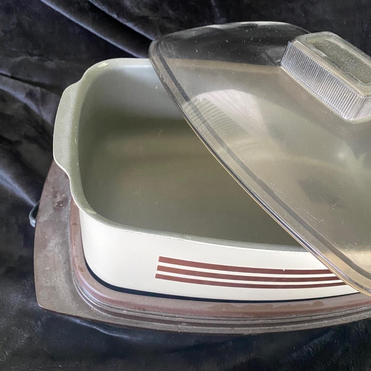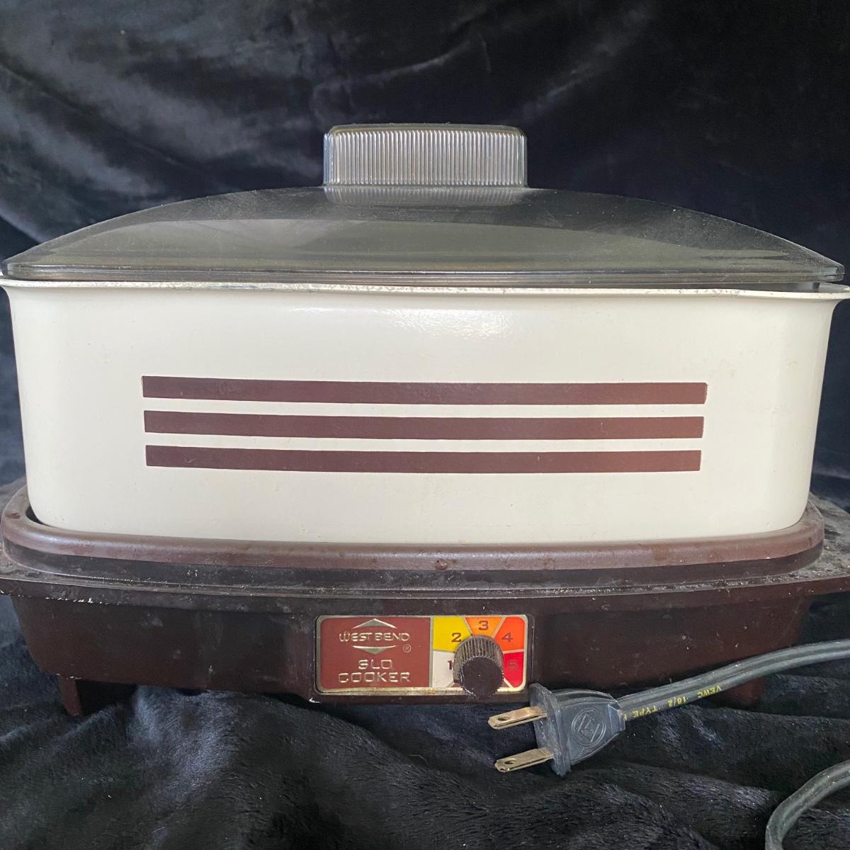 Lot includes one Westbend Slow Cooker the base measures 12” the height being 7.5” the container itself is 10” long with a depth of 4”