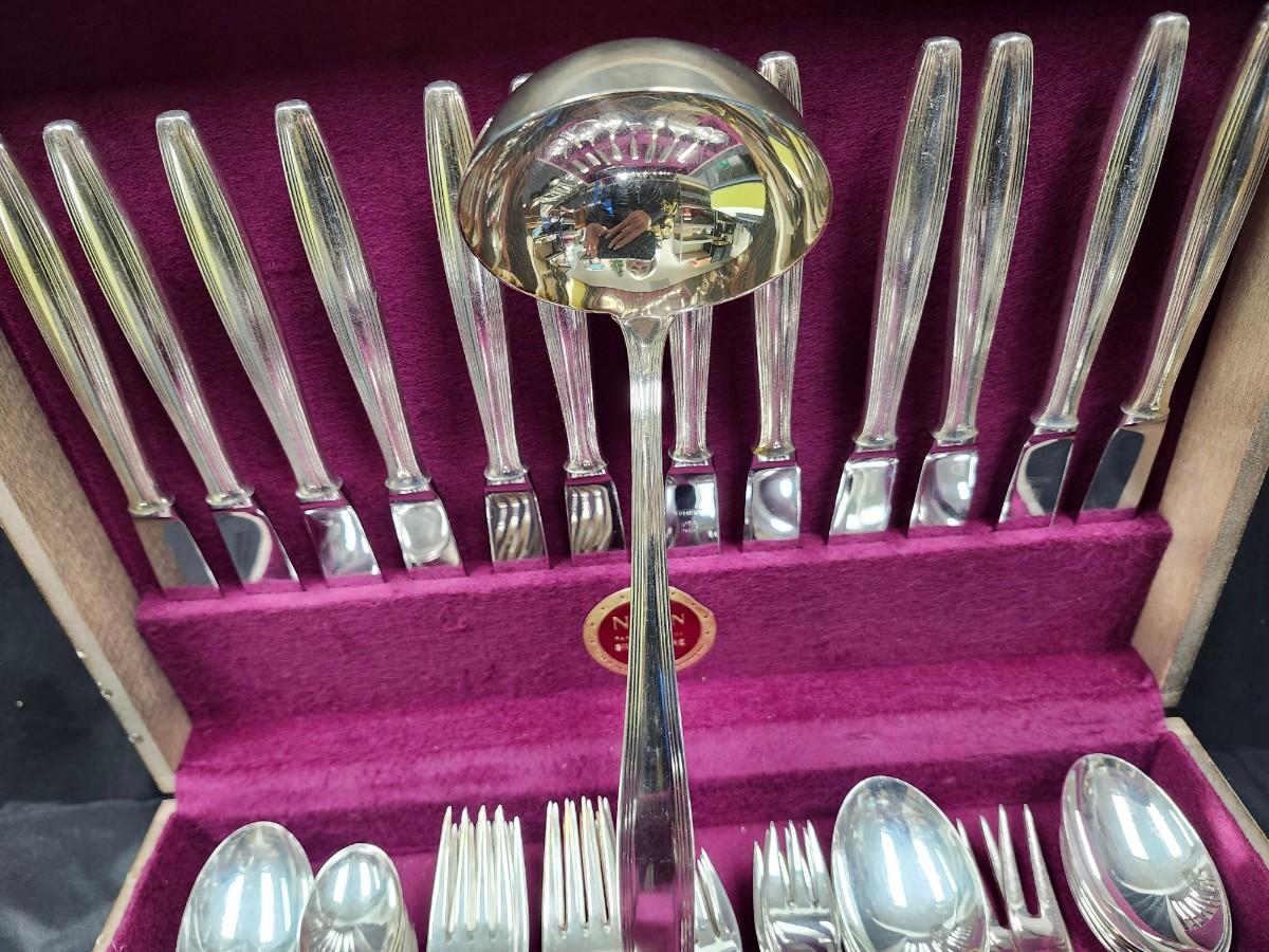 12 each of the dinner knife, dinner fork, soup spoon, and teaspoon.