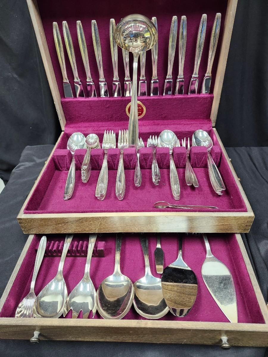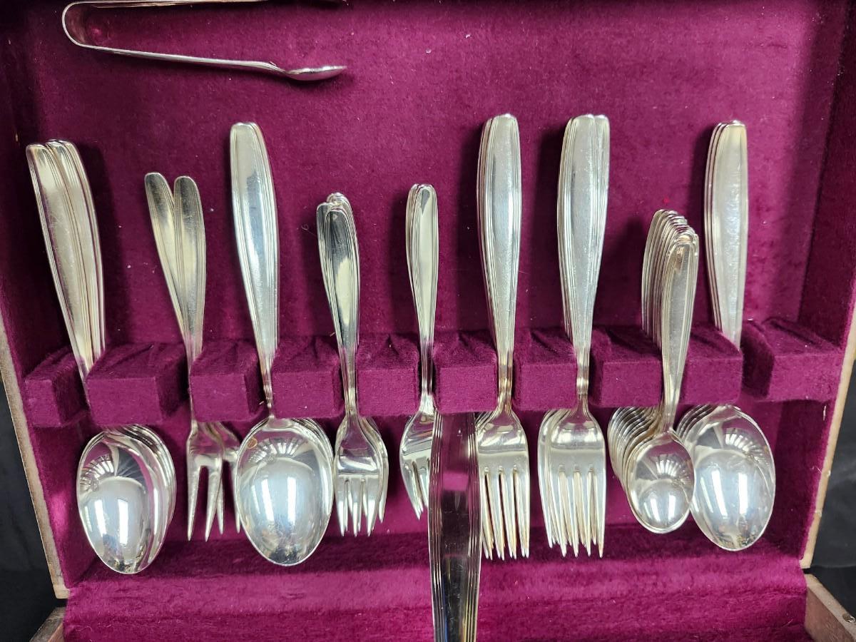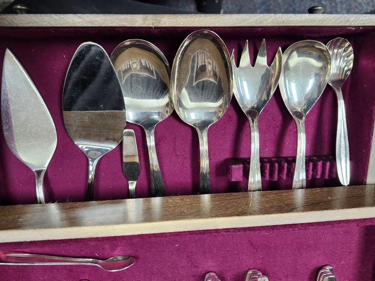 There are 10 salad forks. 2 seafood forks, one set of tongs, 7 spoon/fork server, butter knife, je;ly spoon.