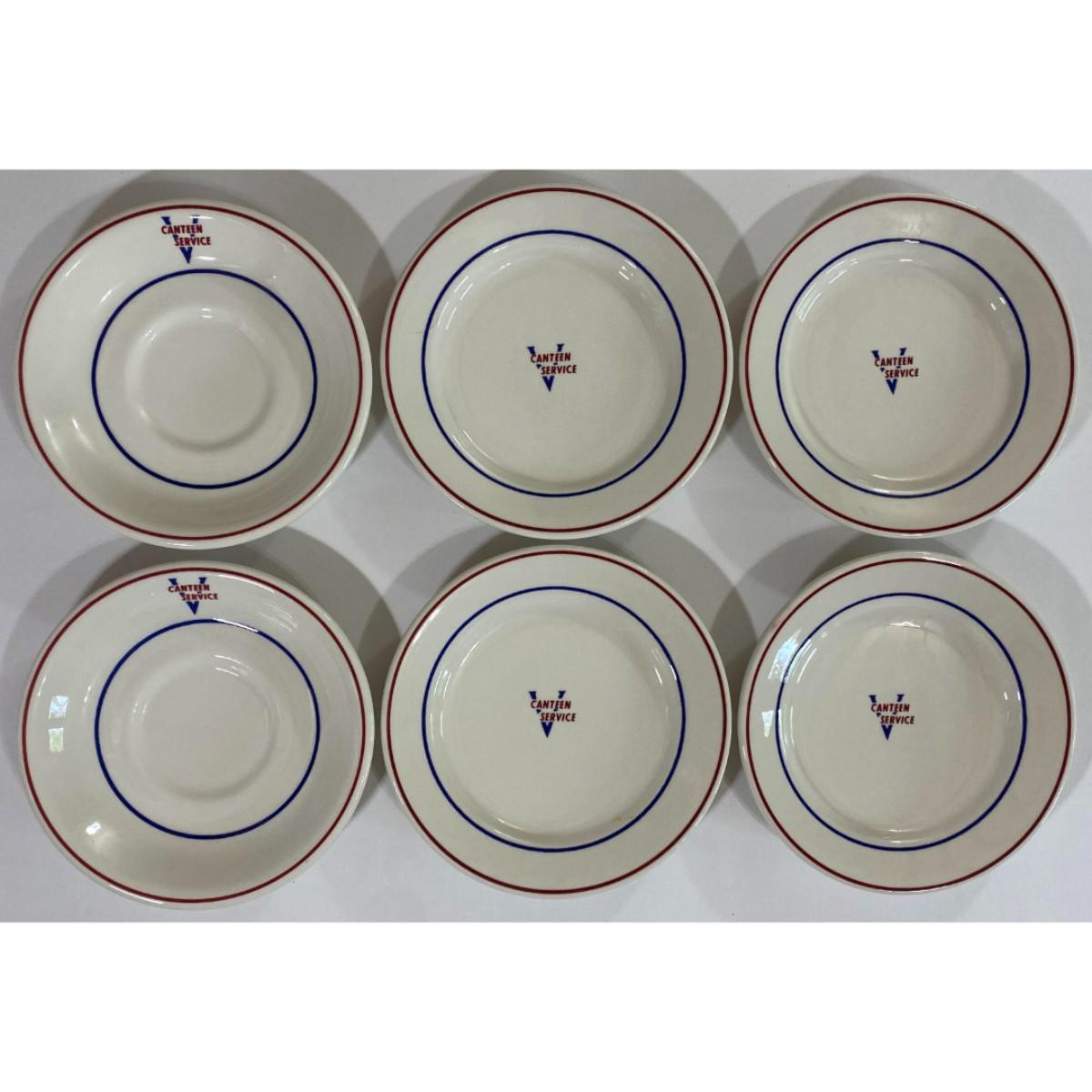 Oneida Buffalo China V Canteen Service 4 Plates (902B) & 2 Saucers (906A) USO