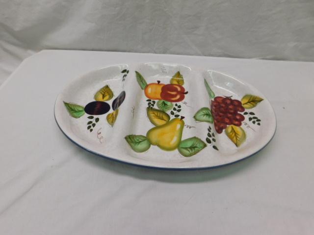 Oneida Ceramic Partition Dish Vintage Fruit Hand Painted