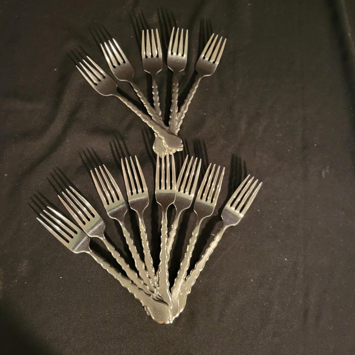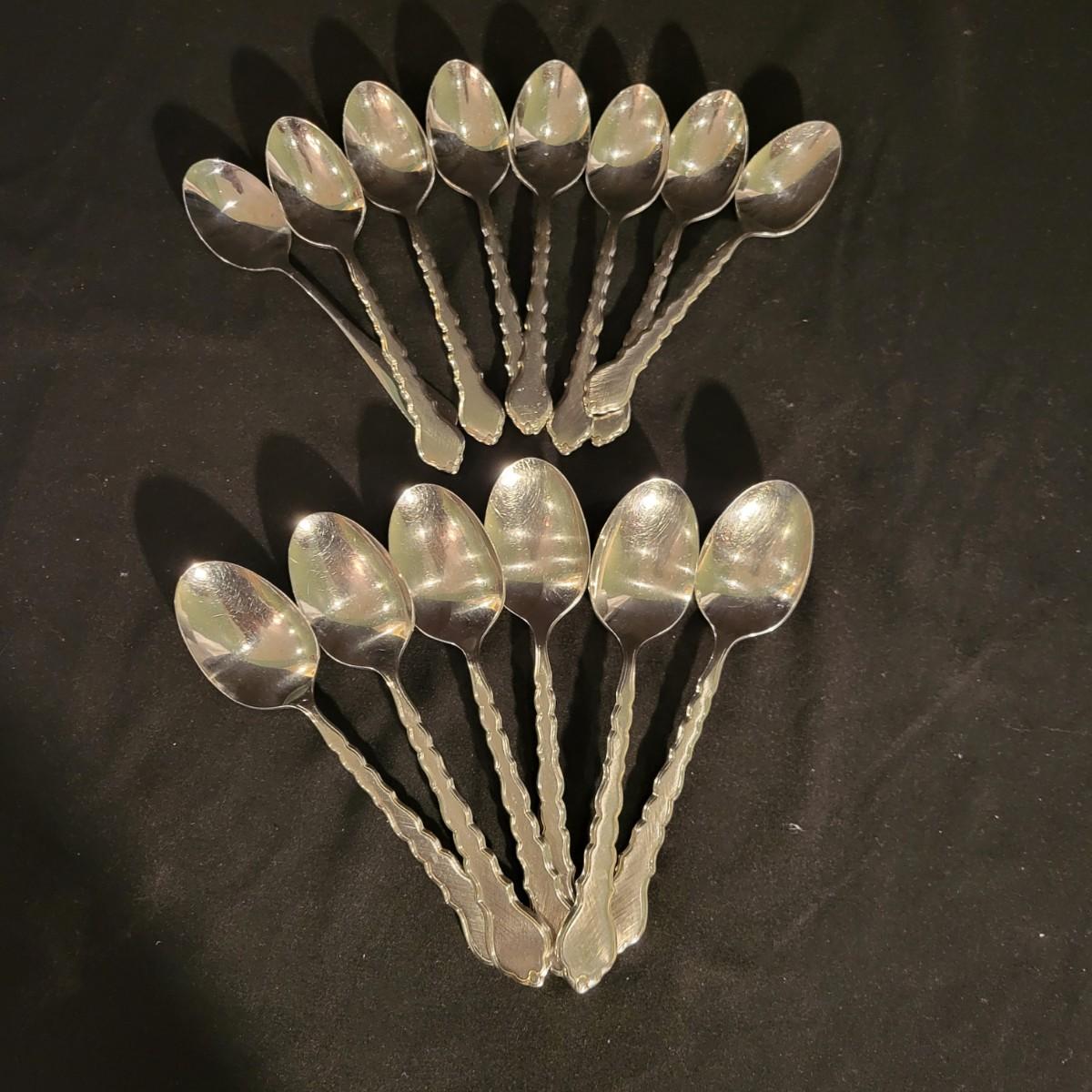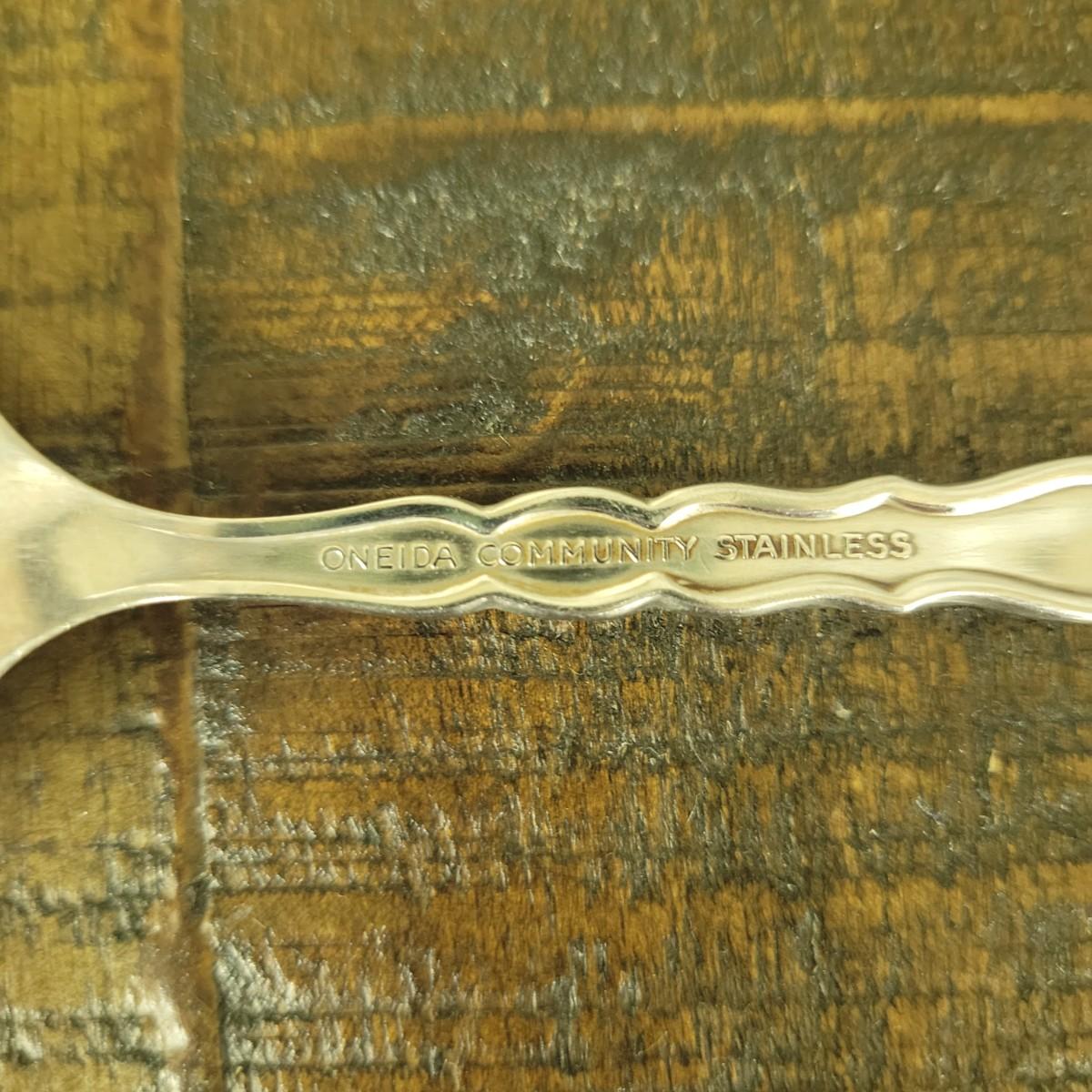 An Onieda community stainless flatware set that has approximately 43 pieces and includes two reusable straws. Also included is a white ceramic crock that measures approximately 7.5"D x 7.5"H. The white wire organizer is also included. Shipping available