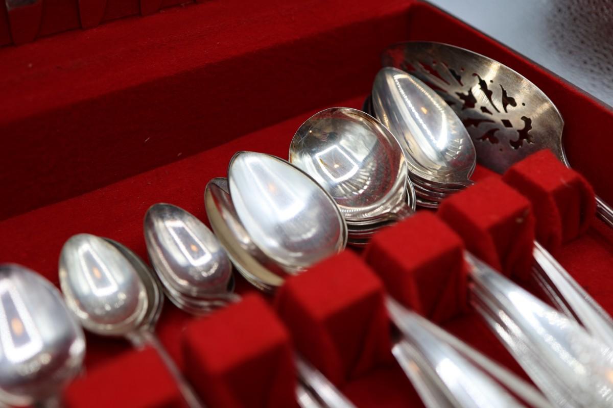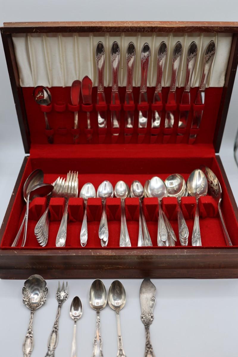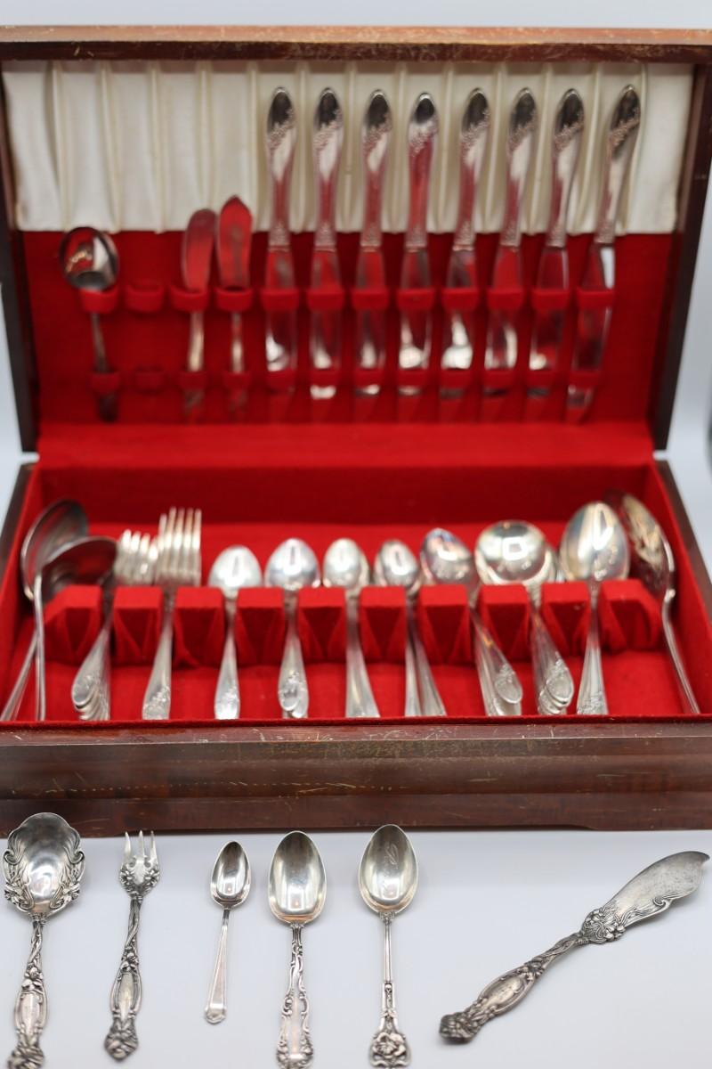 Oneida tudor plate and a few sterling silver ware. The silverware has some wear.