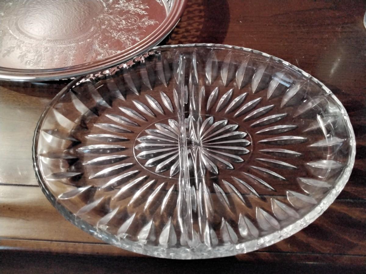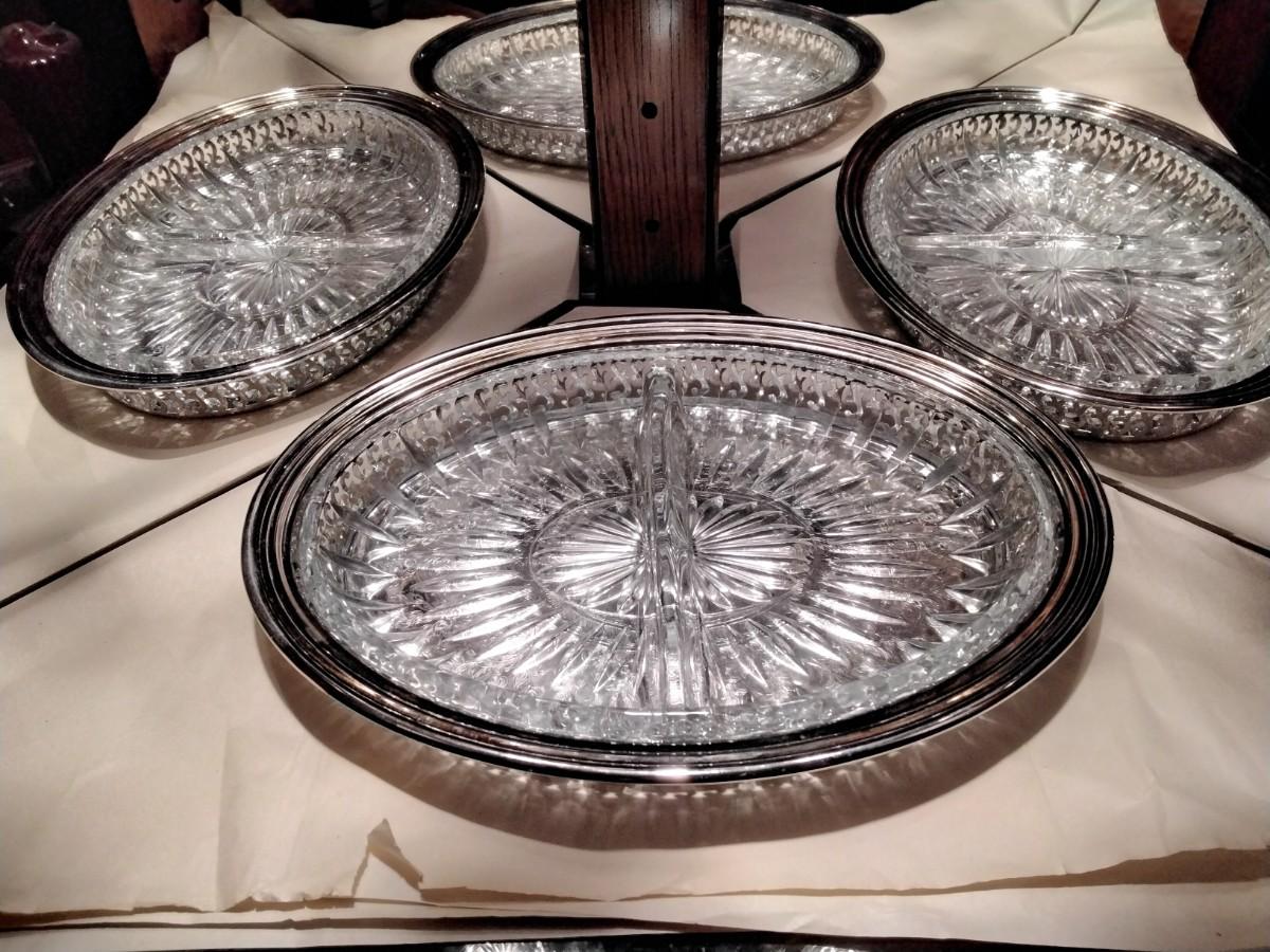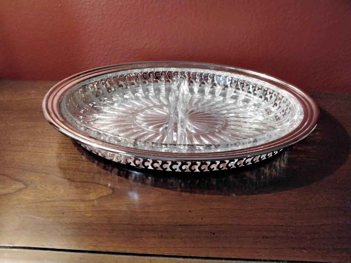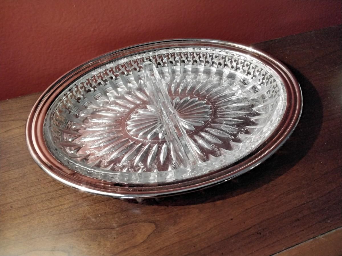 Oneida Cut Crystal and Silverplate Condiment Tray