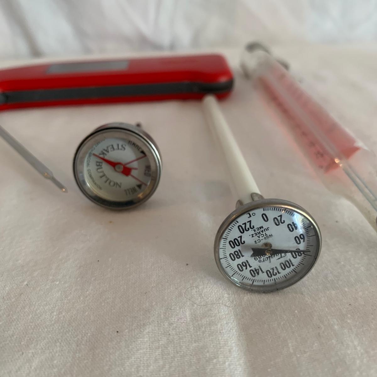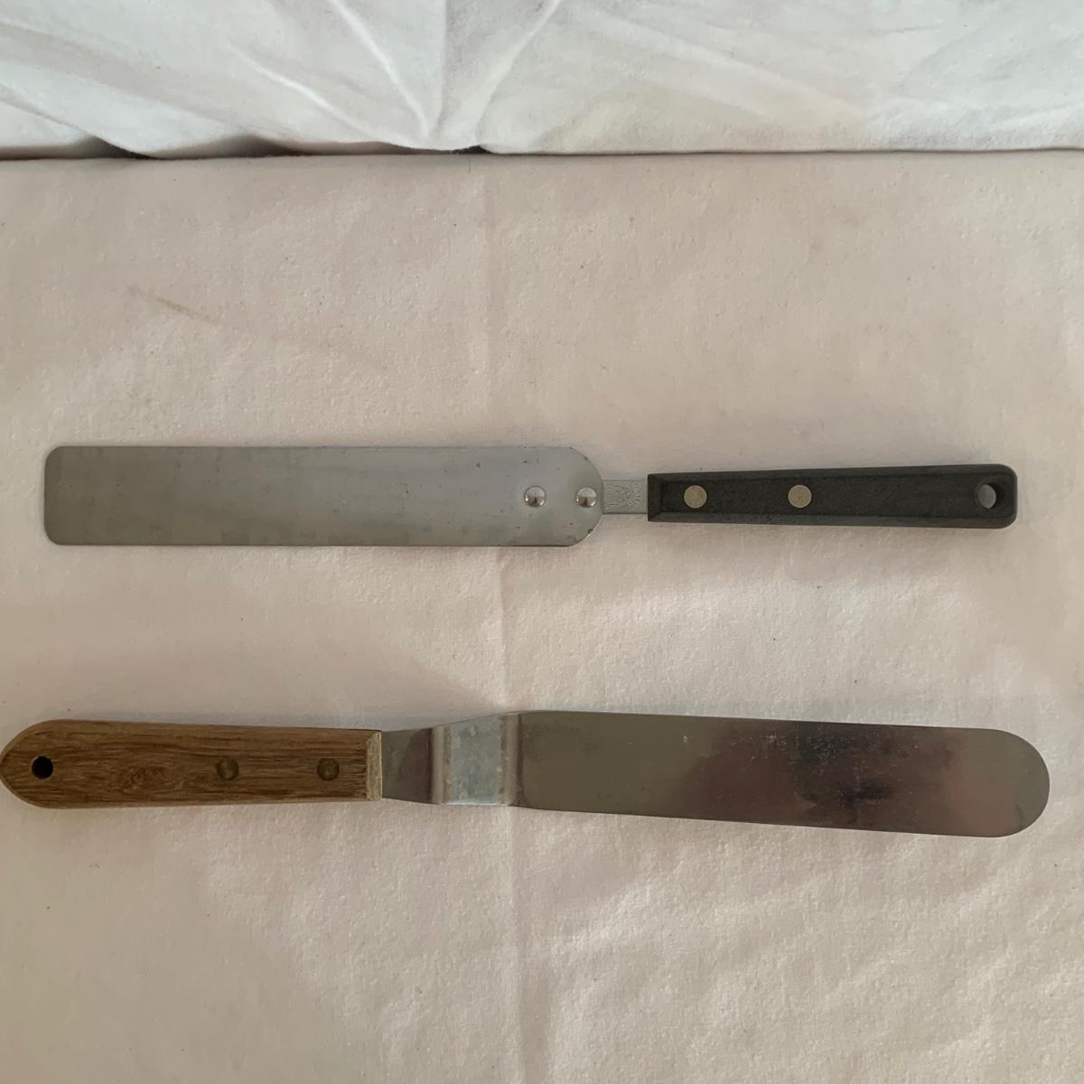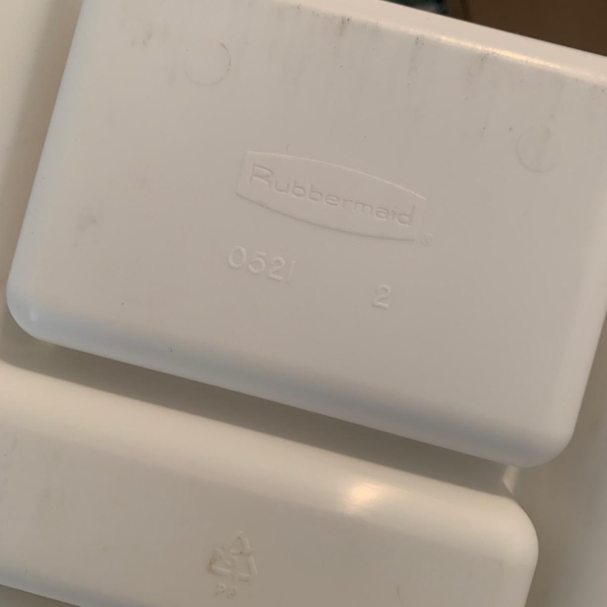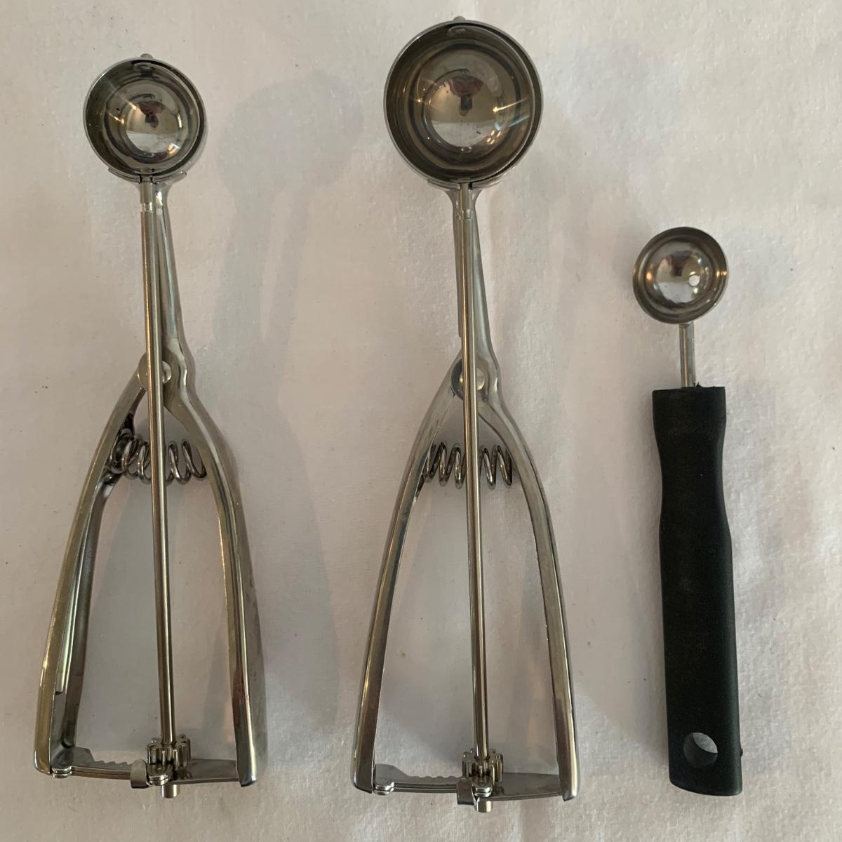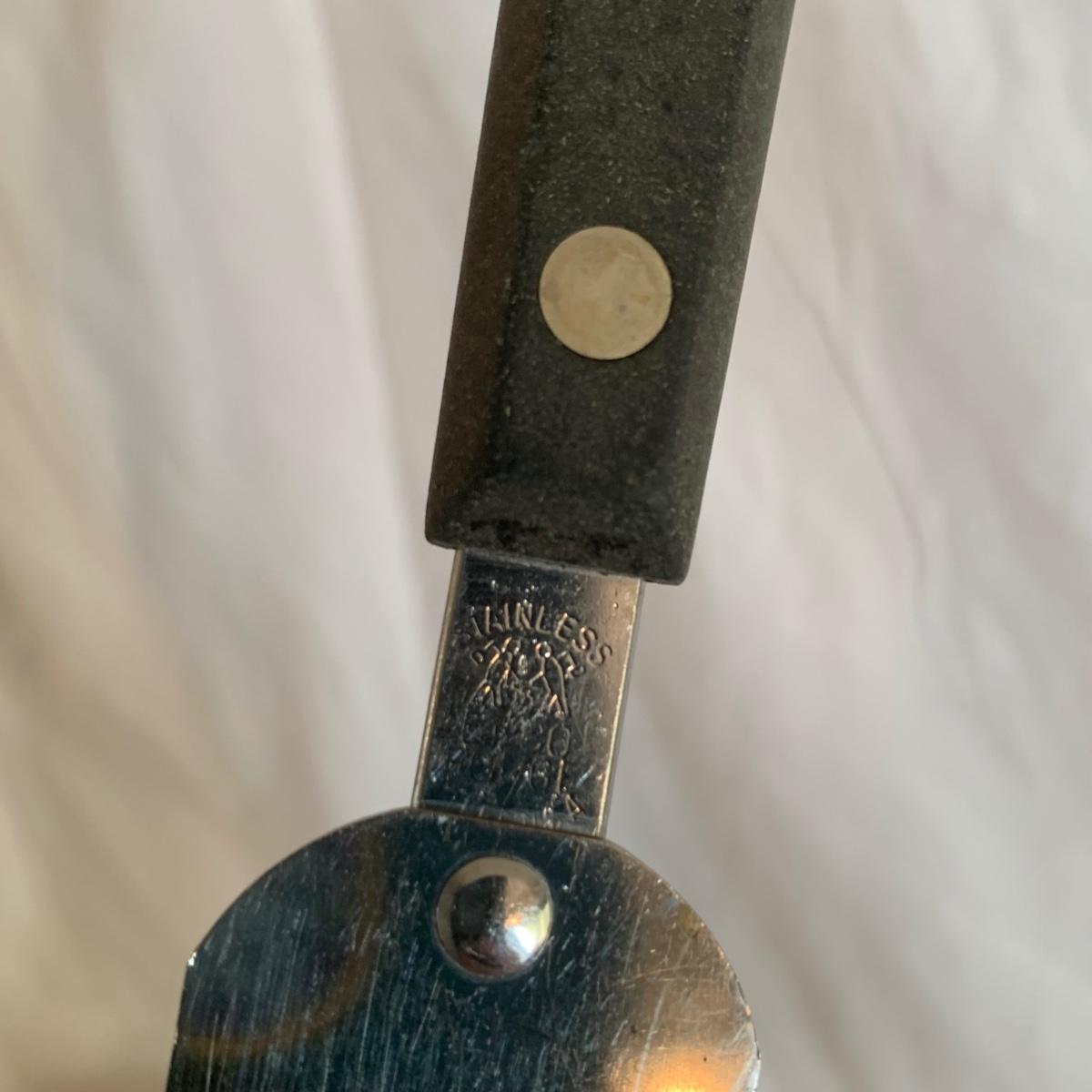 Many kitchen utensils and an Oneida cutlery set, a great kitchen starter kit! The Oneida cutlery set has seven knives, dinner forks, salad forks, eight larger spoons, and six smaller spoons. There is a small two person cutlery set with green plastic handles and four grapefruit spoons with bamboo handles. 25+ utensils are included, as well as two drawer organizers. The white Rubbermaid organizer is 12” x 16” x 2.5”H. Please see photos for utensils inventory.