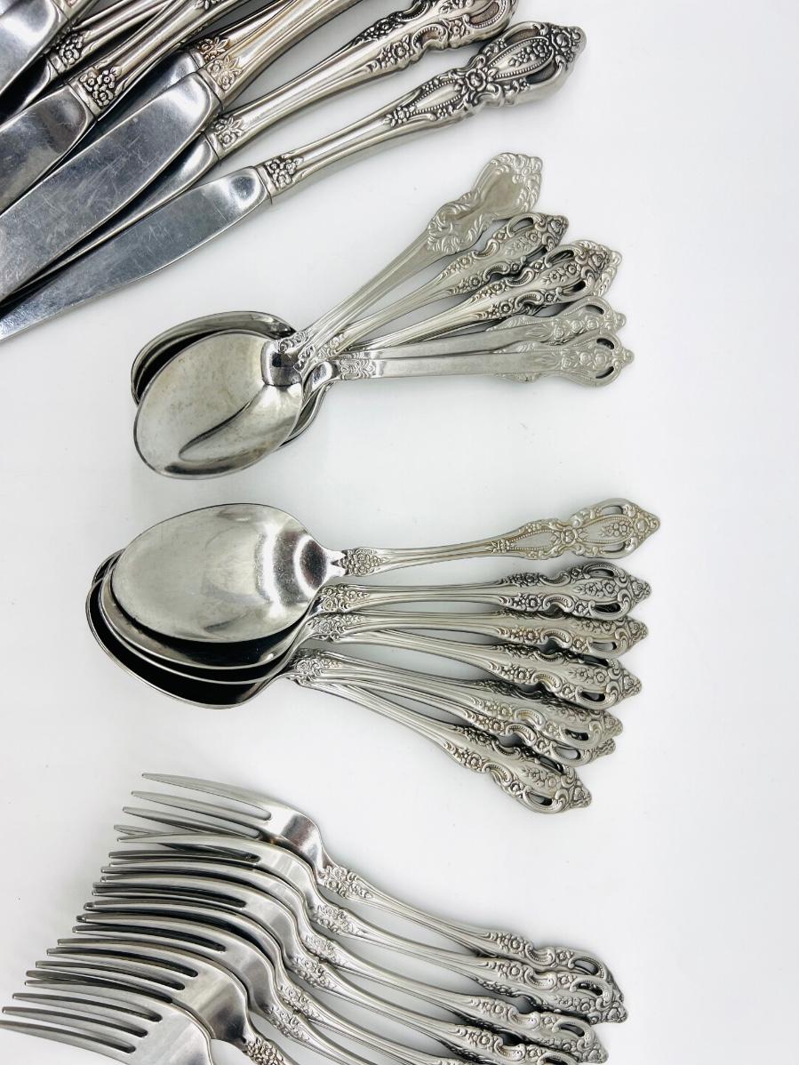 ONEIDA Flatware -48 Pieces Total. This comes with 9 Big forks, 9 small forks, 10 big spoons, 7 small spoons and 13 knives.