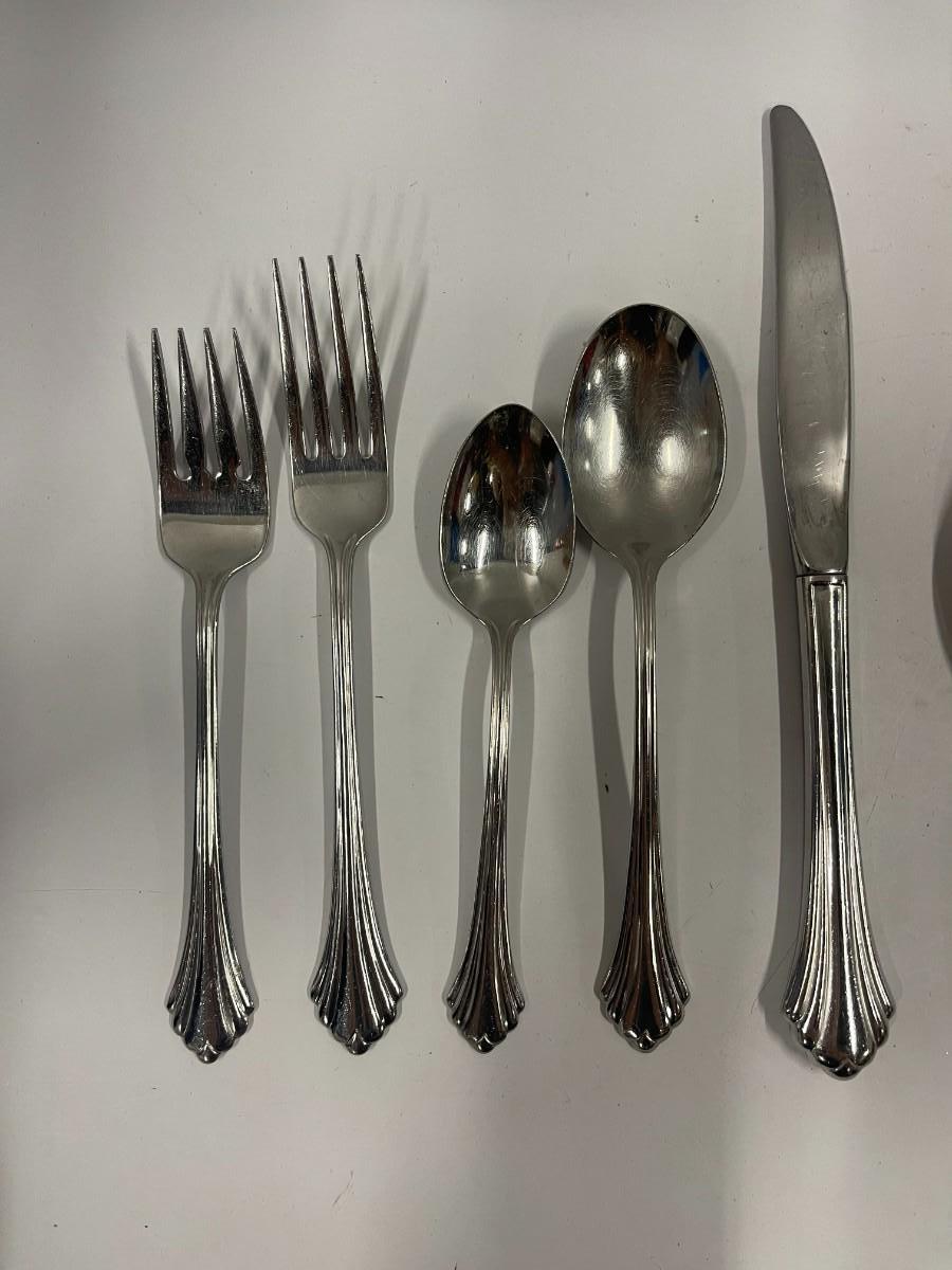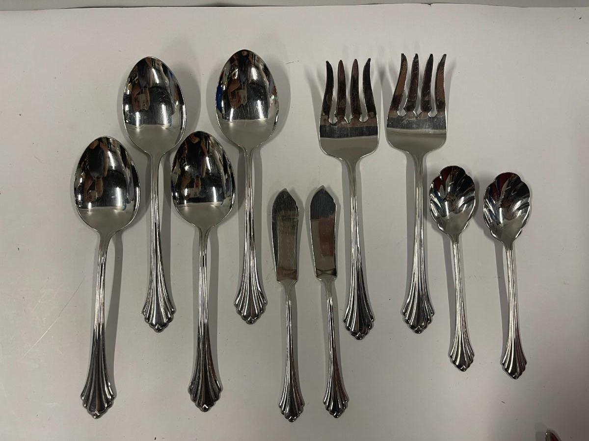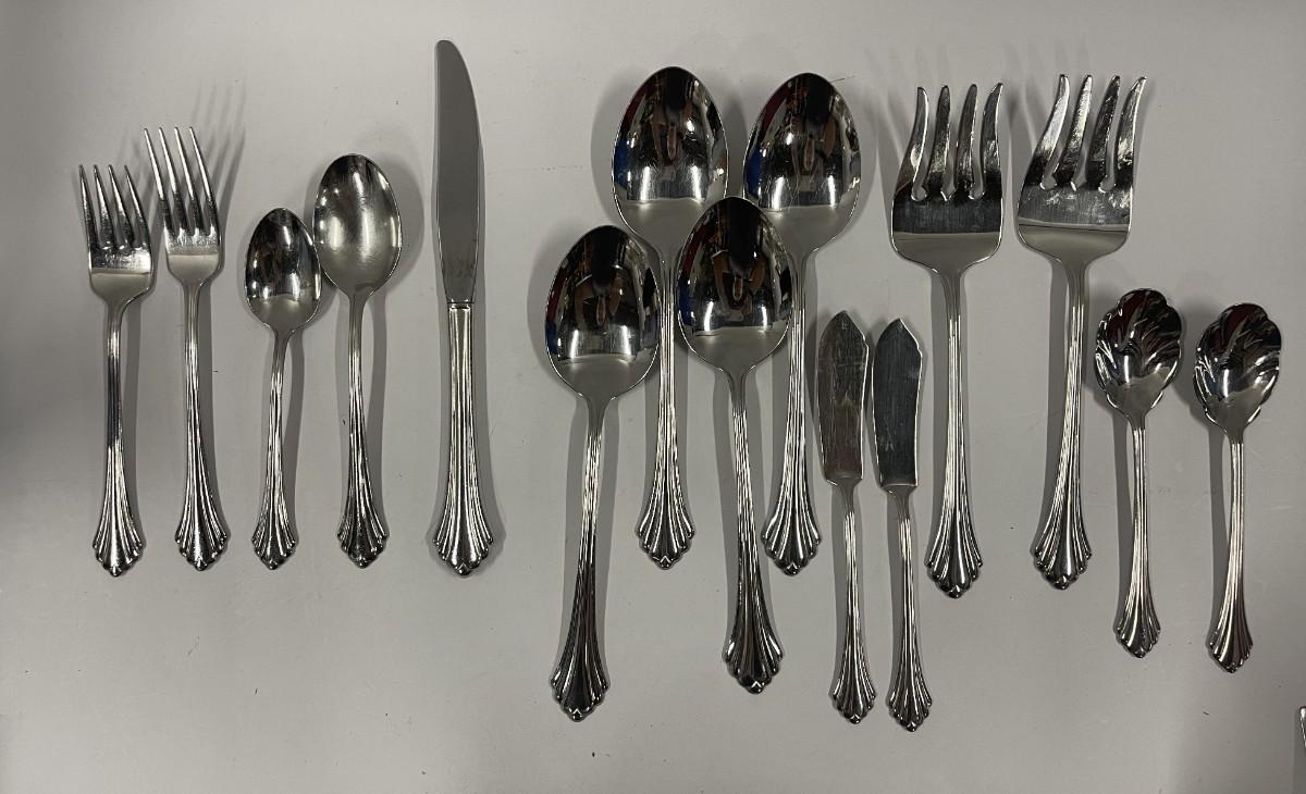 Oneida flatware set. 50 pieces. 8 place settings plus serving pieces shown.