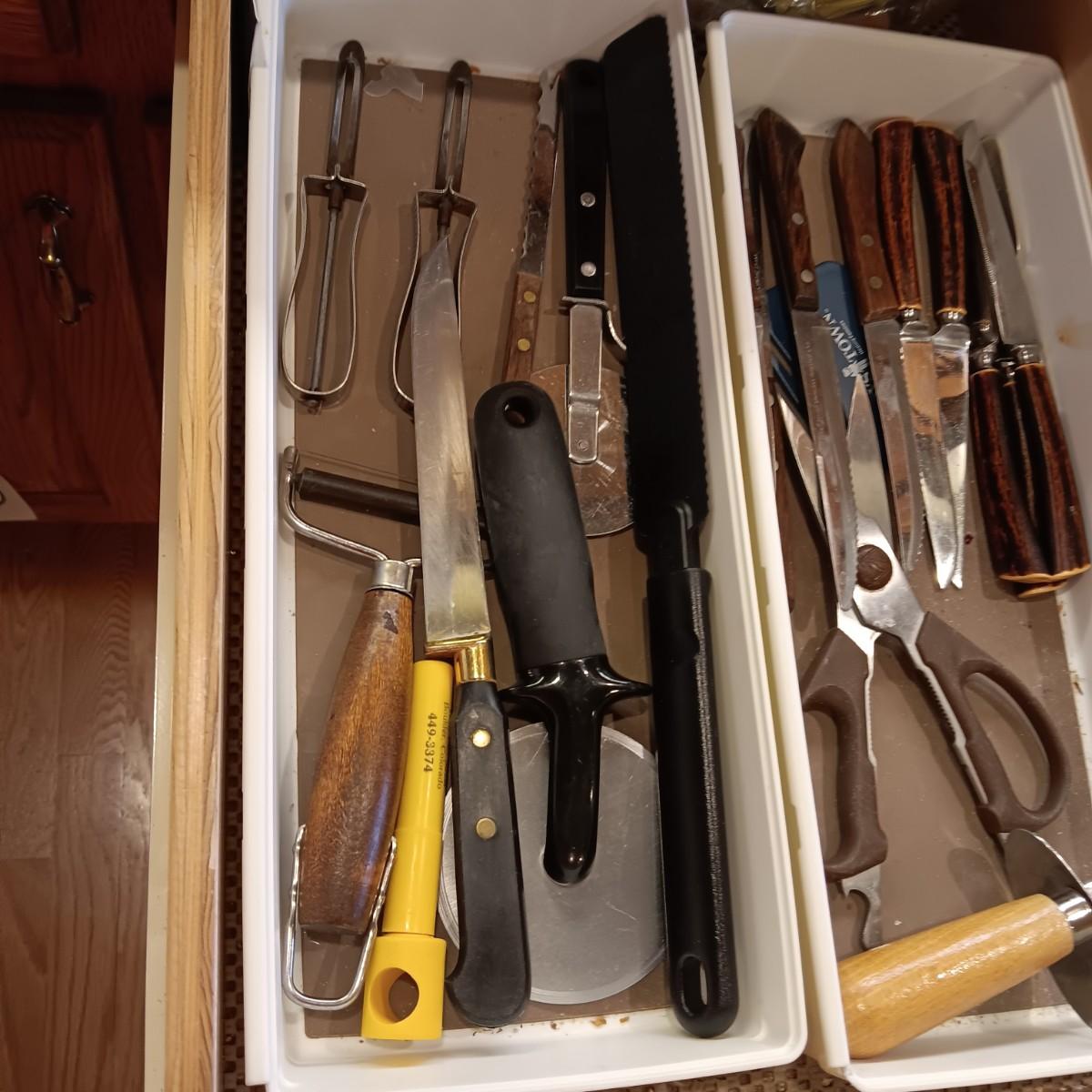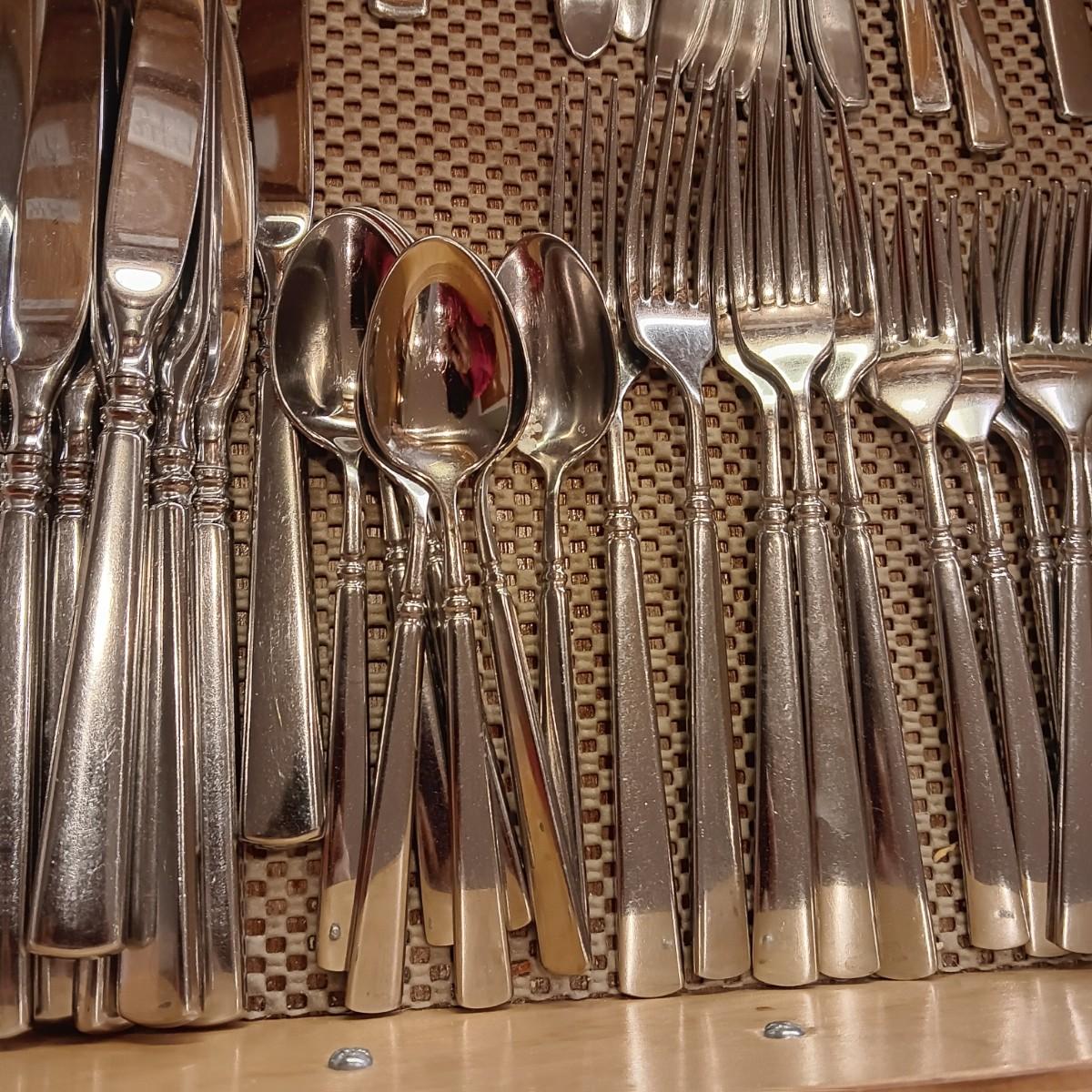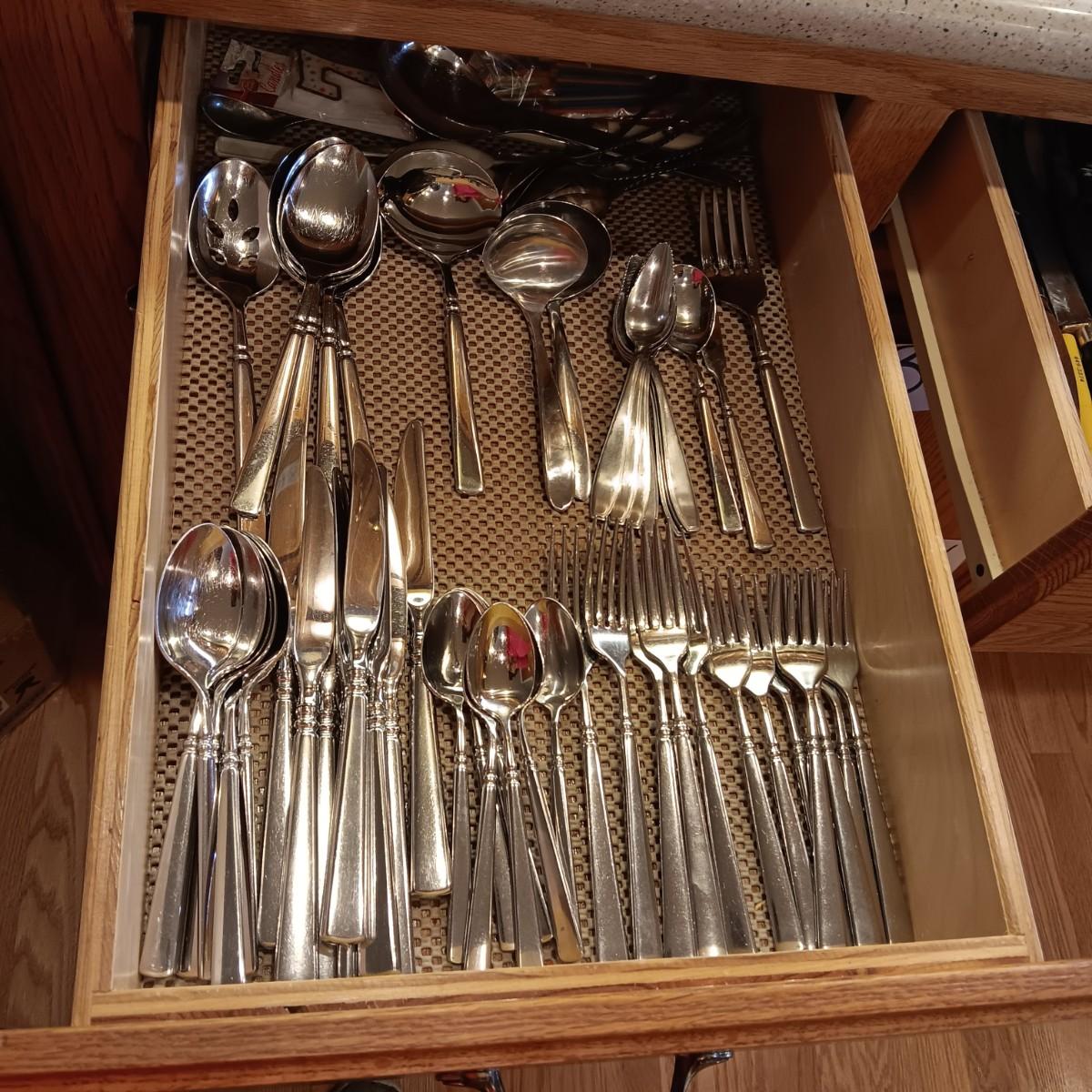 ONEIDA FLATWARE WITH SERVING PIECES, SOME KITCHEN UTENSILS AND CUTLERY