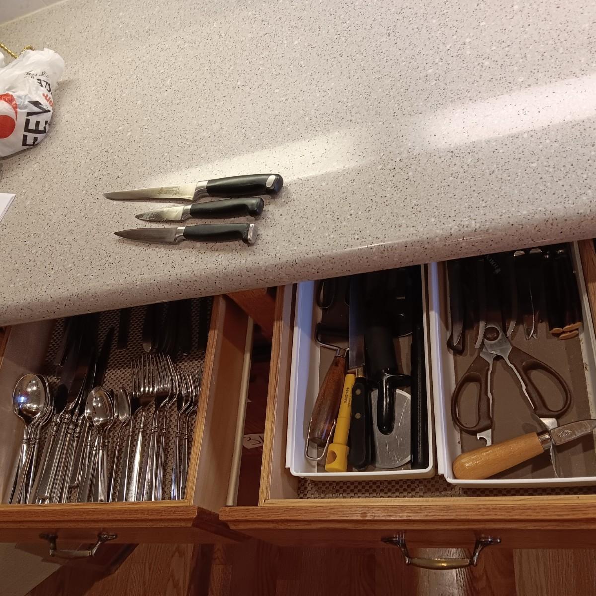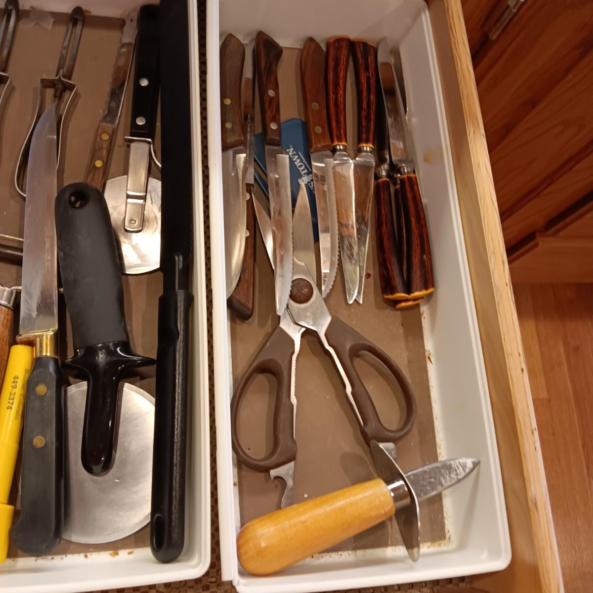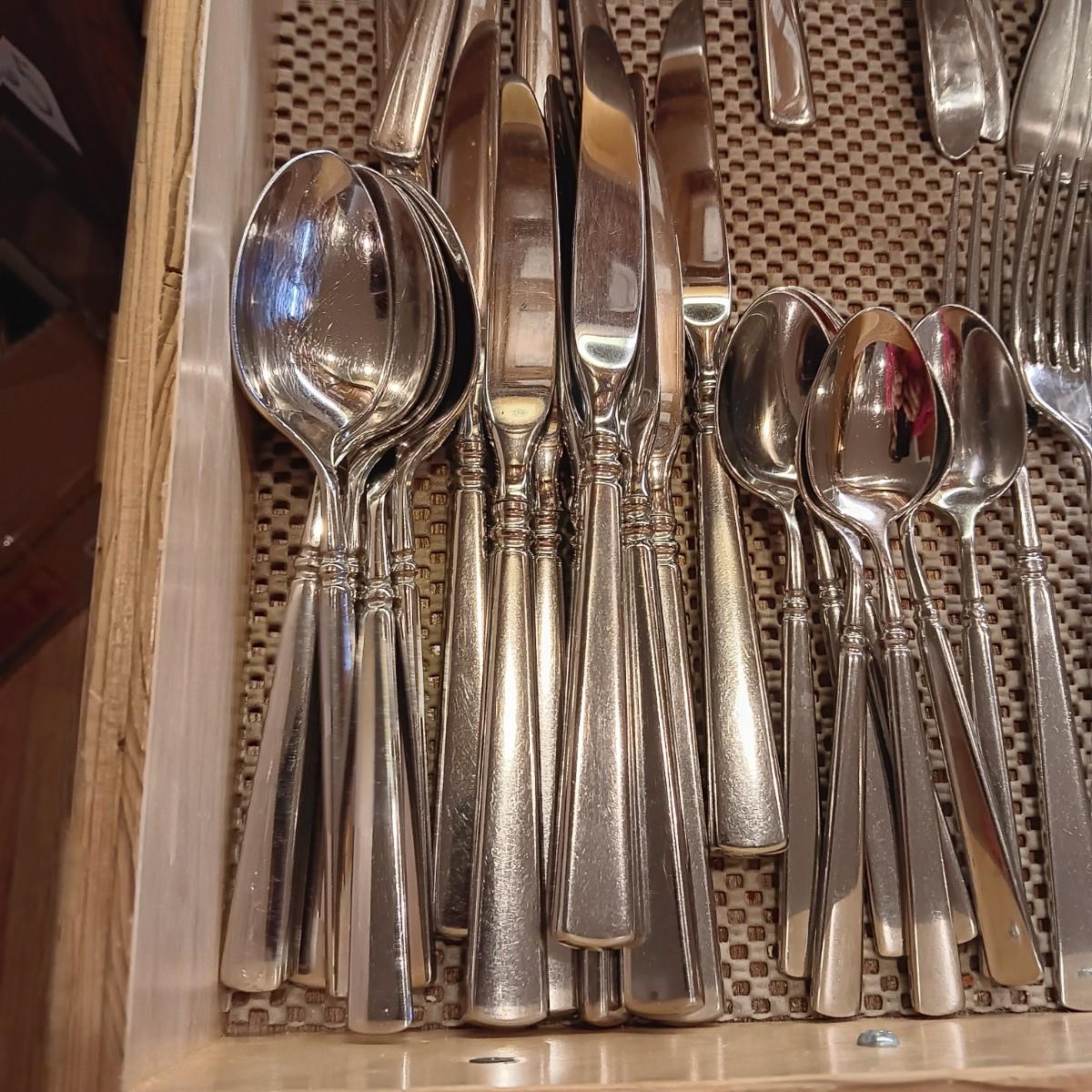 ONEIDA FLATWARE WITH SERVING PIECES, SOME KITCHEN UTENSILS AND CUTLERY