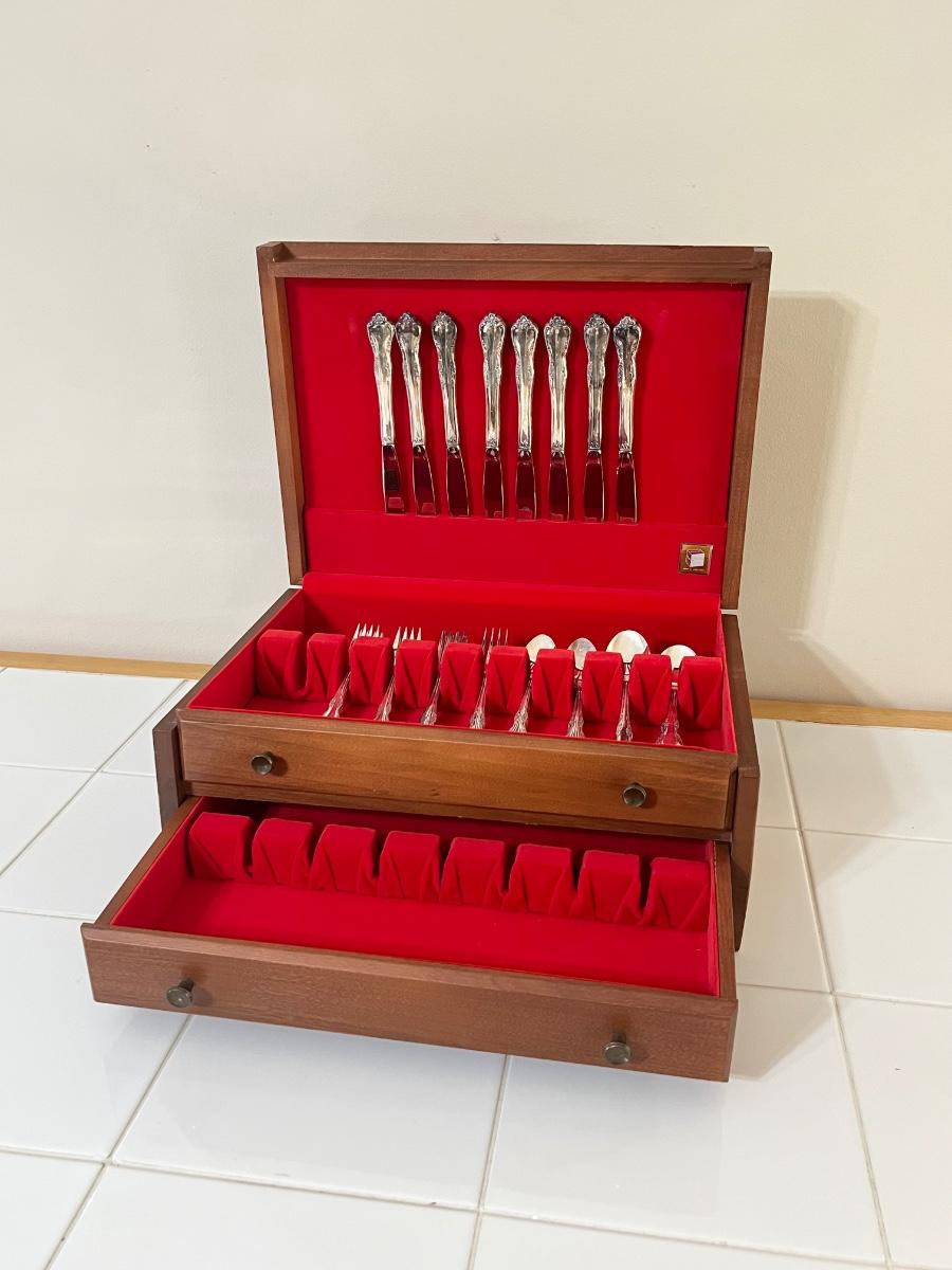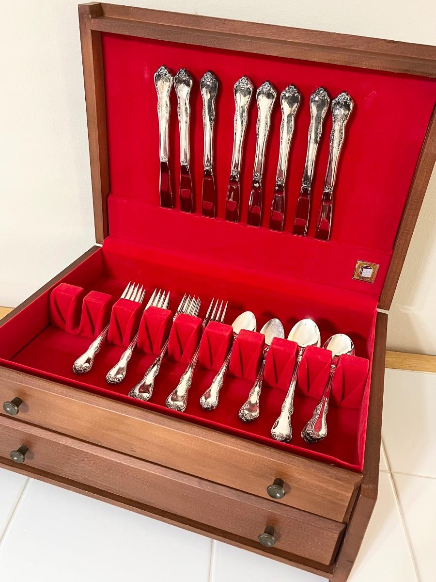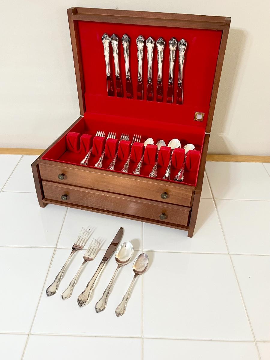 Silver Plate ~ 40 Pieces Including = (8) Dinner fork ~ (8) Salad fork ~ (8) Butter knife ~ (8) Soup spoon ~ (8) Dessert spoon ~ Needs polishing