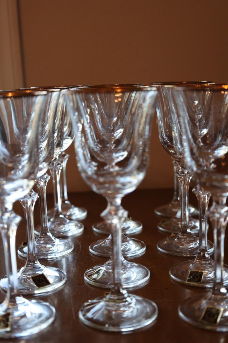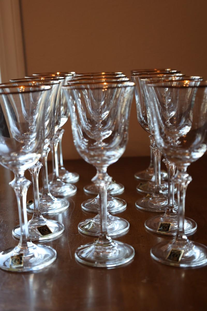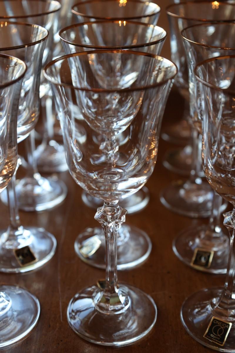 Oneida Gold Rimmed Cyrstal (7.5") - Set of Fourteen (14) Glasses