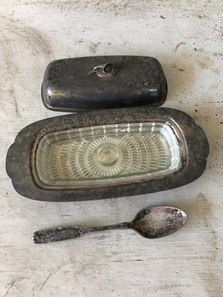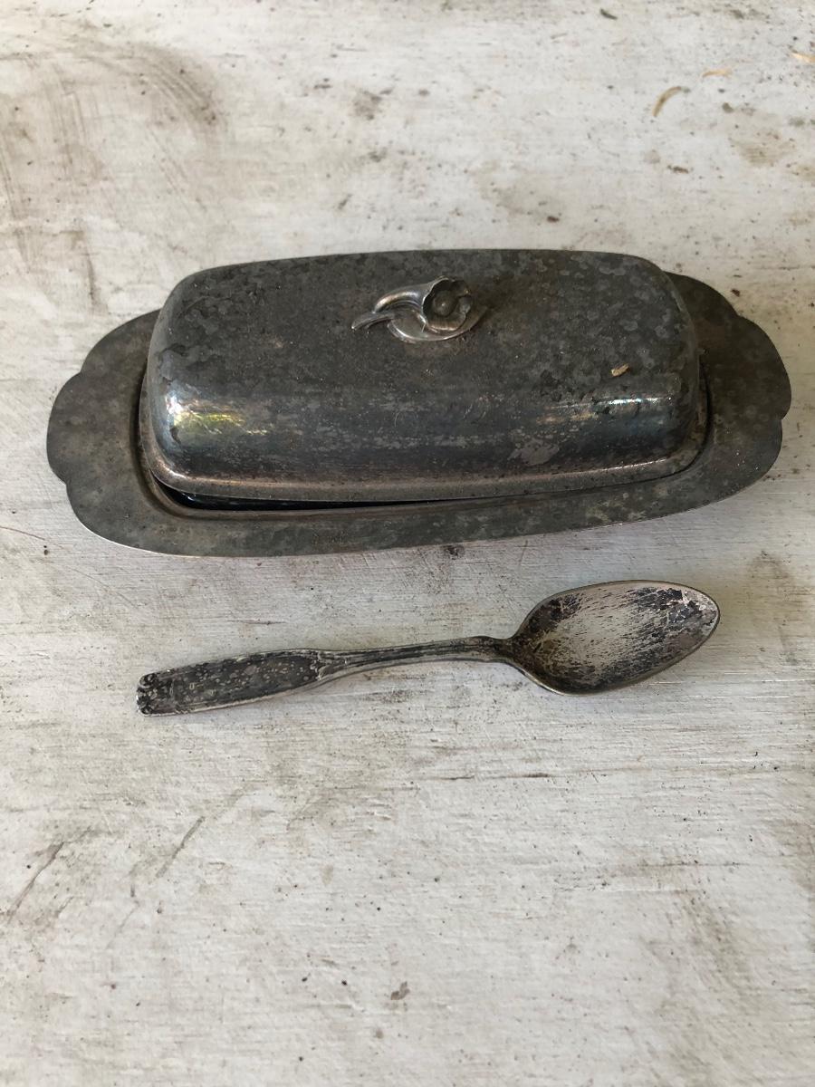 Oneida silver plate butter dish and spoon