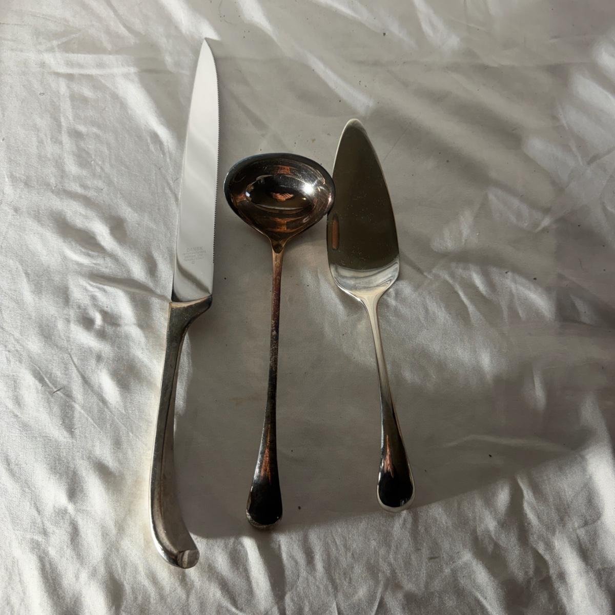 Oneida Silverplate Bowl, Gerber Knives & Dansk Serving Utensils (LR-MG)