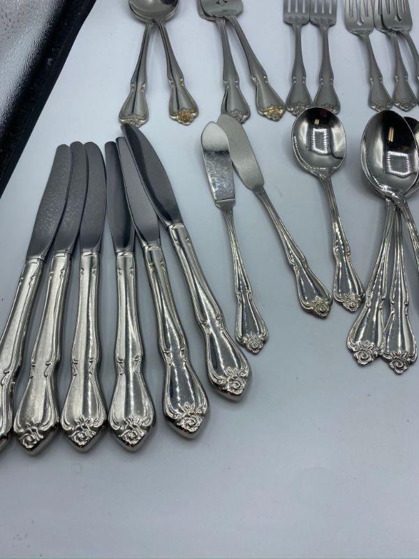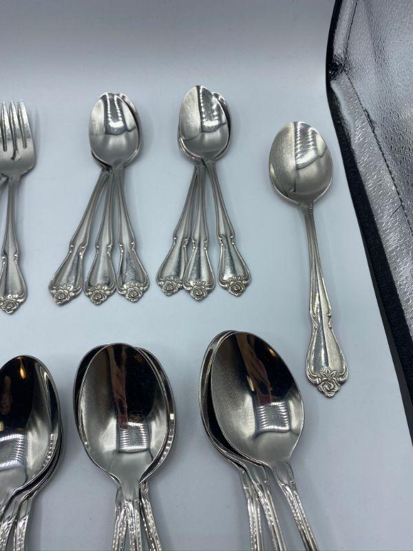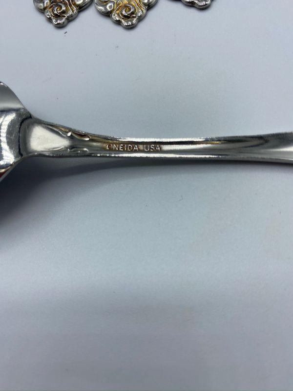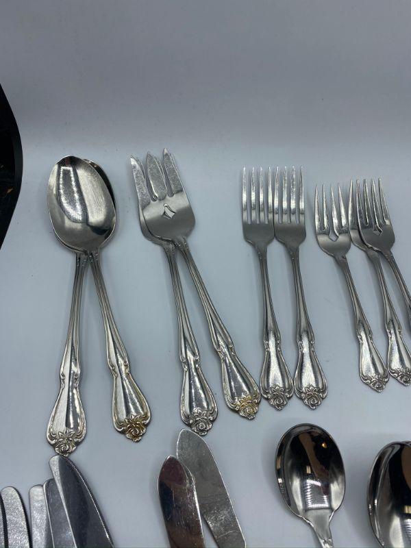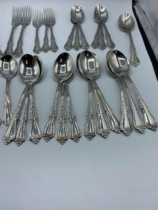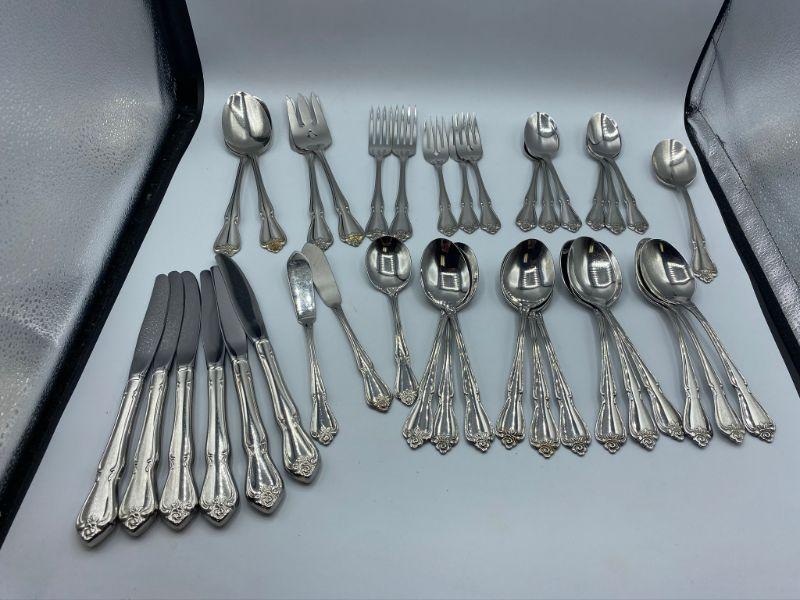 Oneida flatware. Stainless steel. Not a complete set but a lot of pieces. Flower pattern handle. 36 pieces.