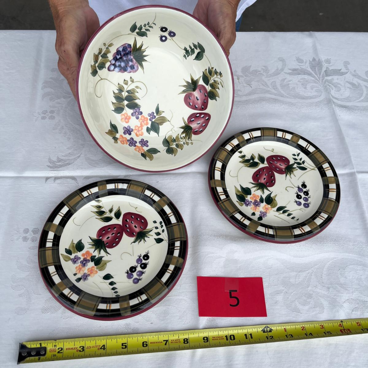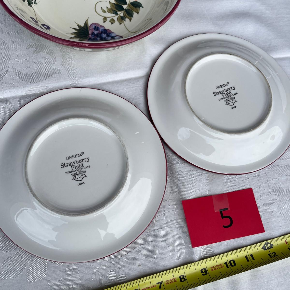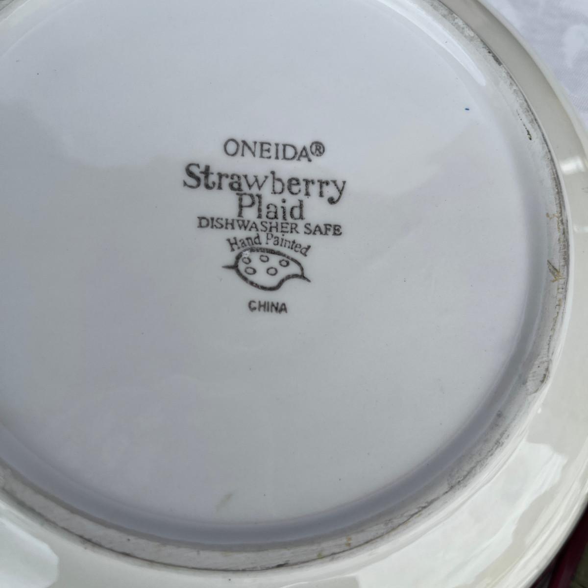 Oneida Strawberry Plaid 2 Salad Plates & a serving bowl