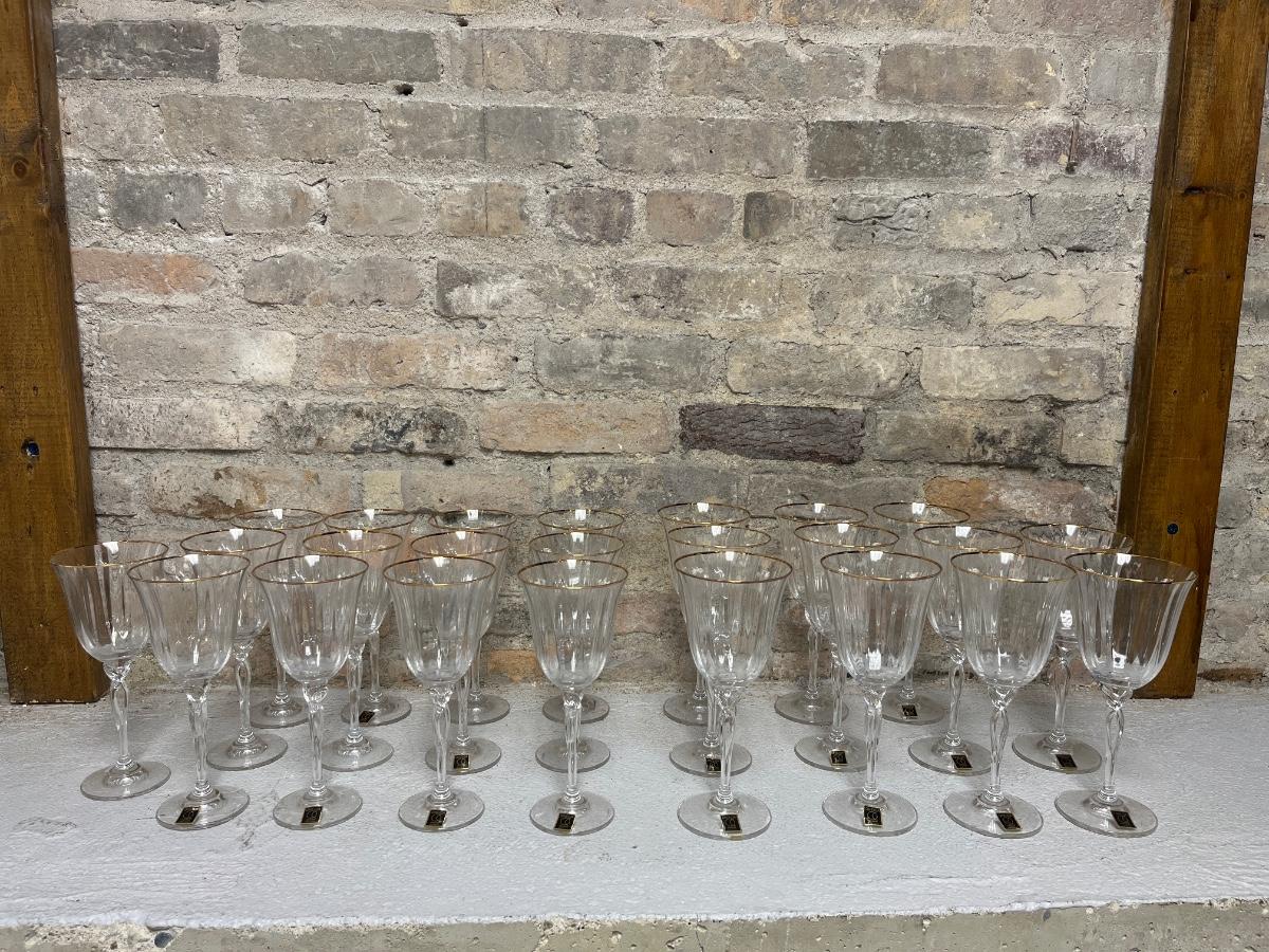 Set of 11 water goblets and 13 wine goblets - Oneida Chateau Gold...most still have their stickers!